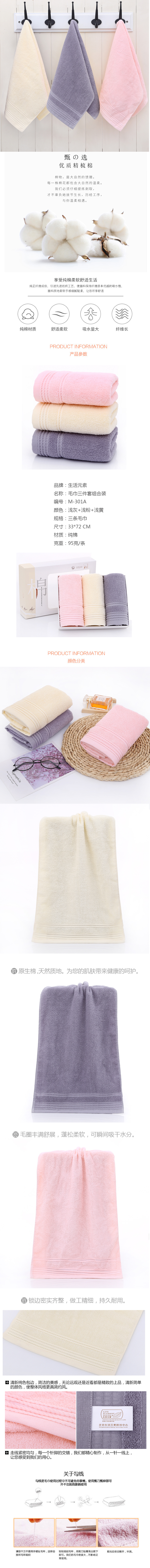 生活元素 全棉毛巾三件套组合装 浅灰+浅粉+浅黄 M-301A