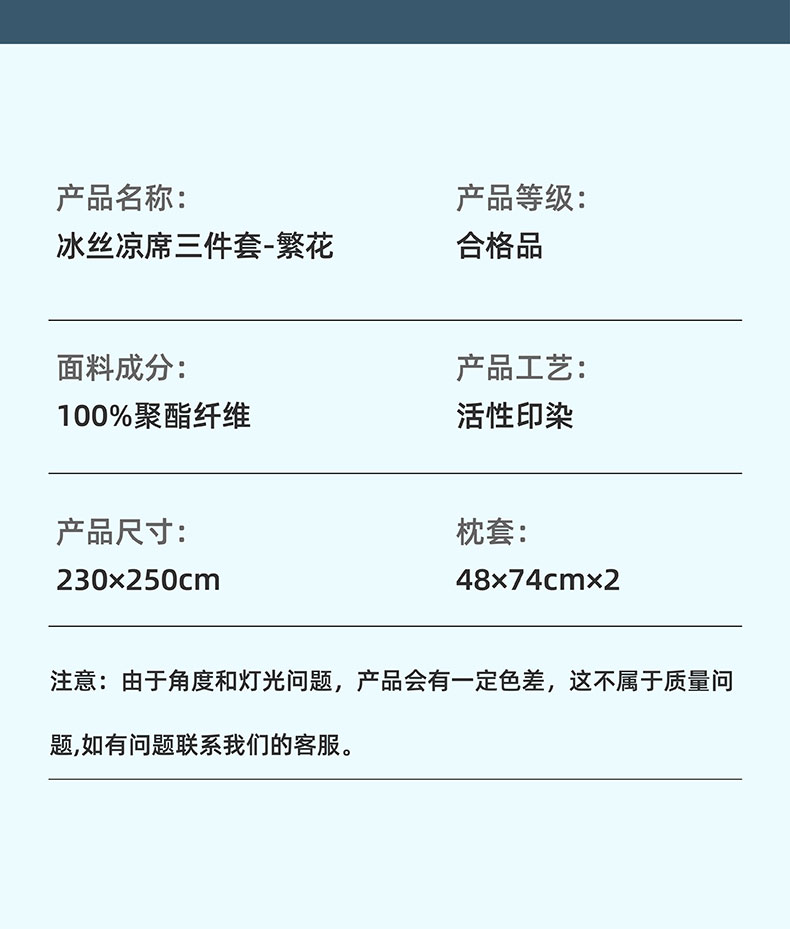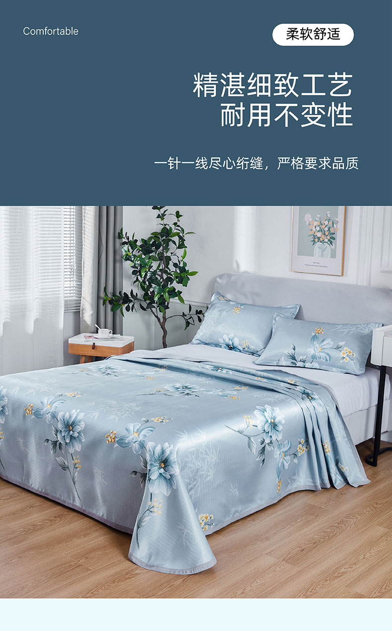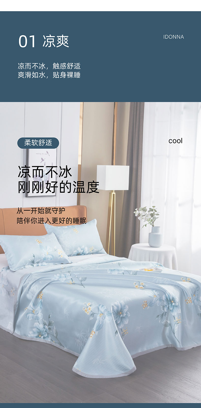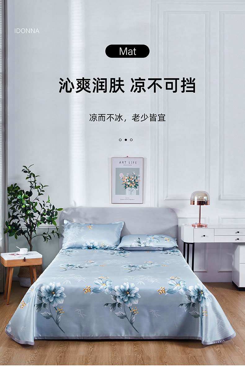 唐纳家纺 IDONNA 冰丝凉席三件套 TN-SSM22028规 格:230×250cm 枕 套:48cm×74cm×2天蓝色 天蓝色 1.5米床