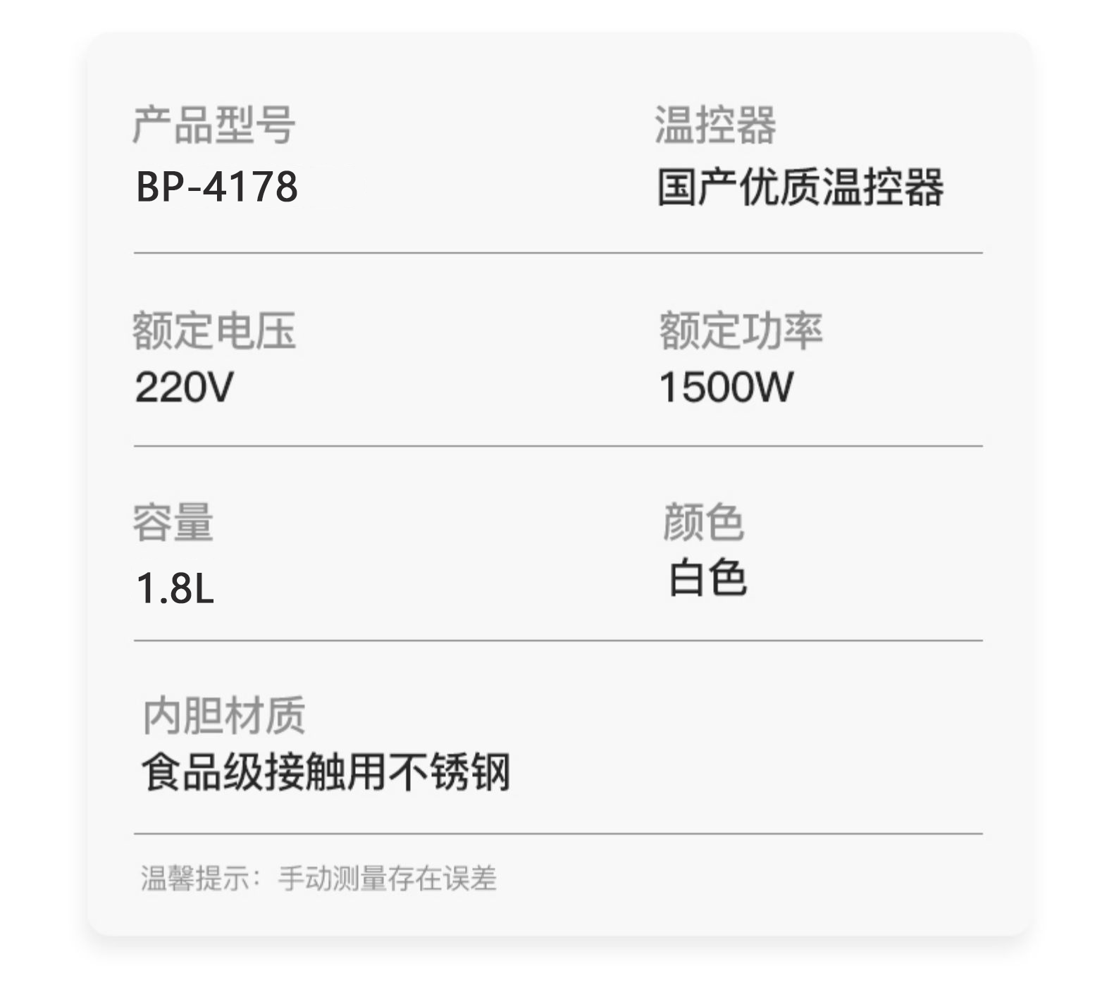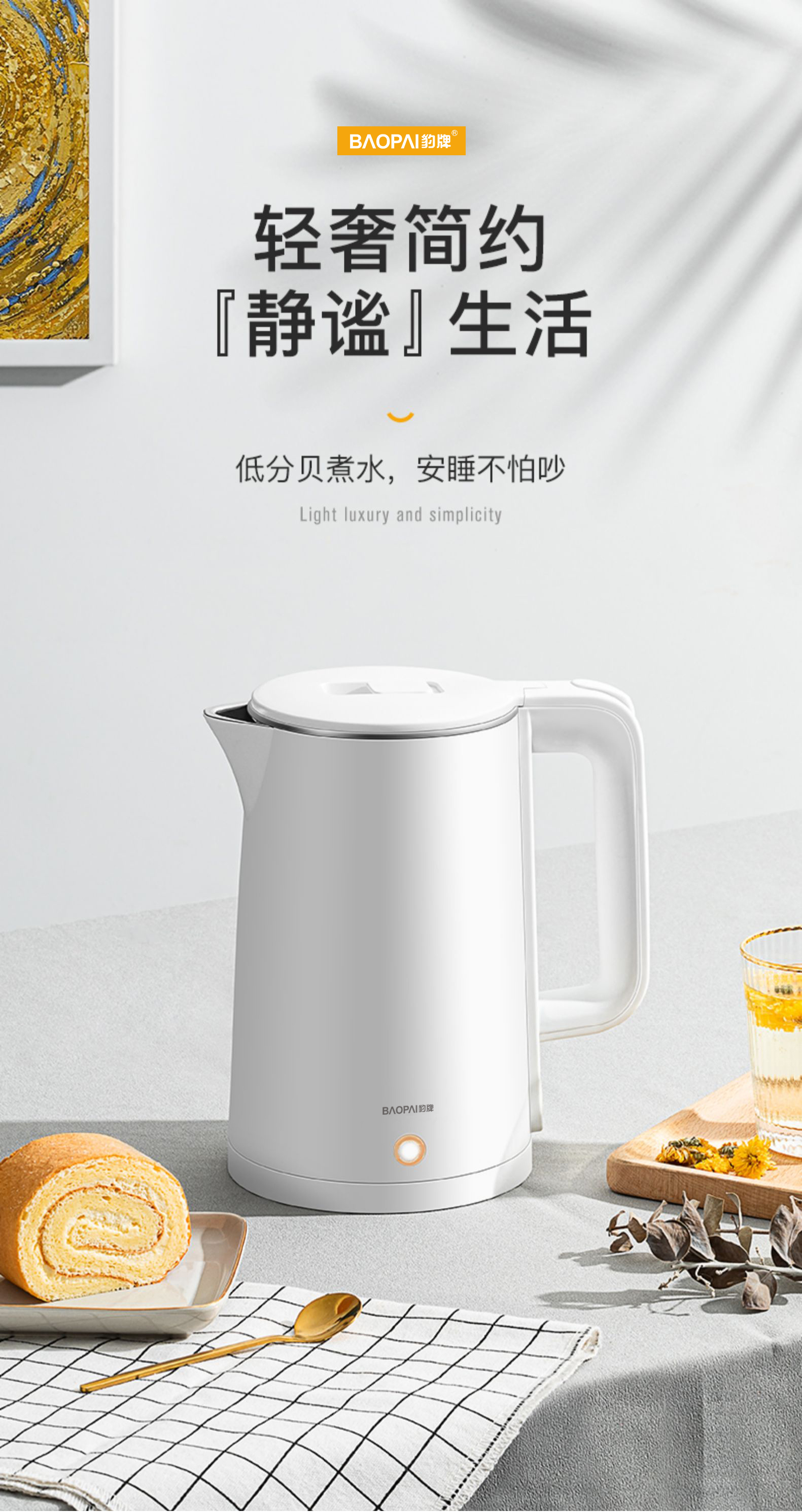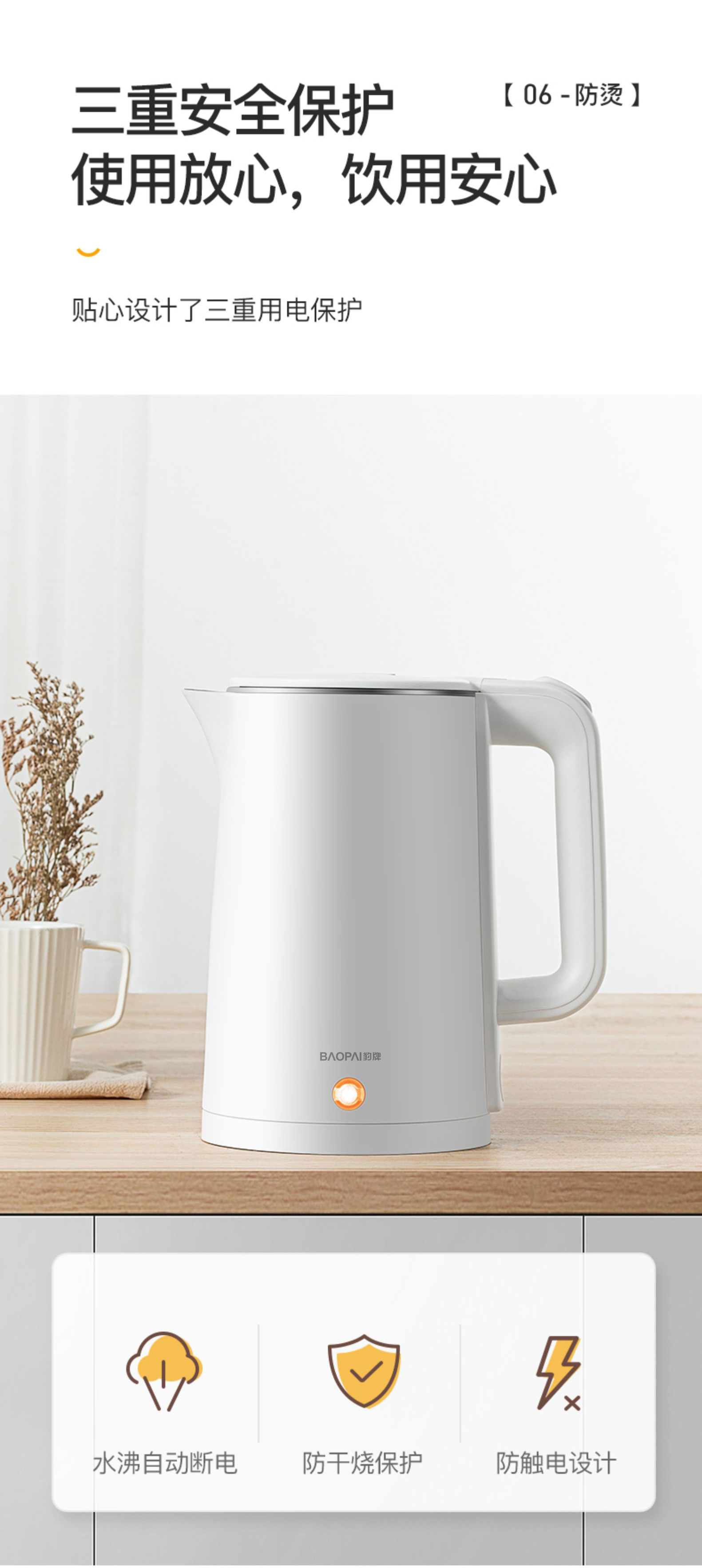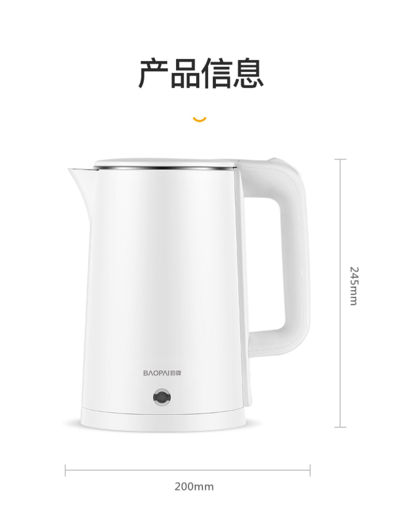 豹牌 1.8L防烫电热水壶1500W大功率 大口径壶口设计BP-4178 本白色