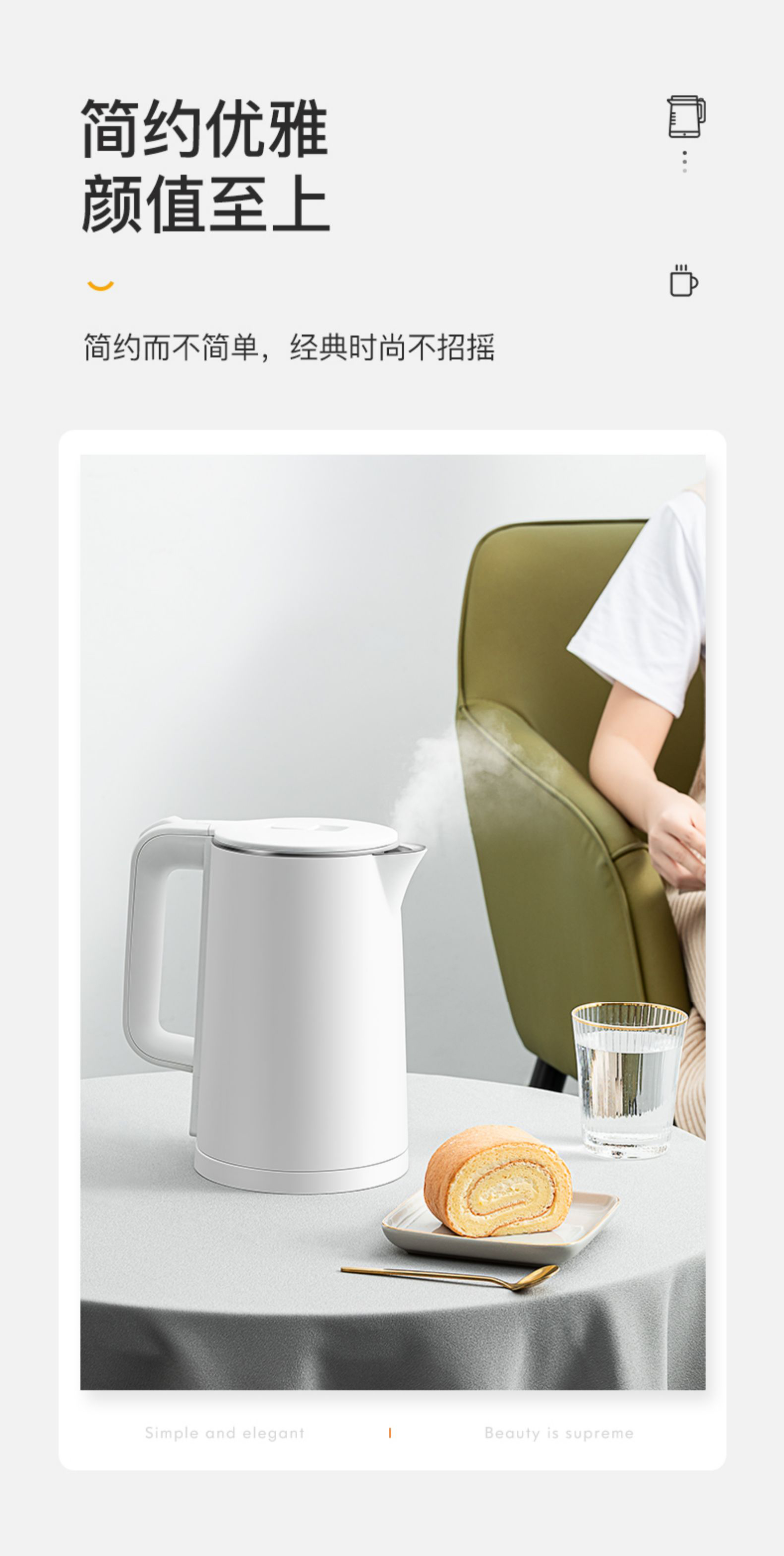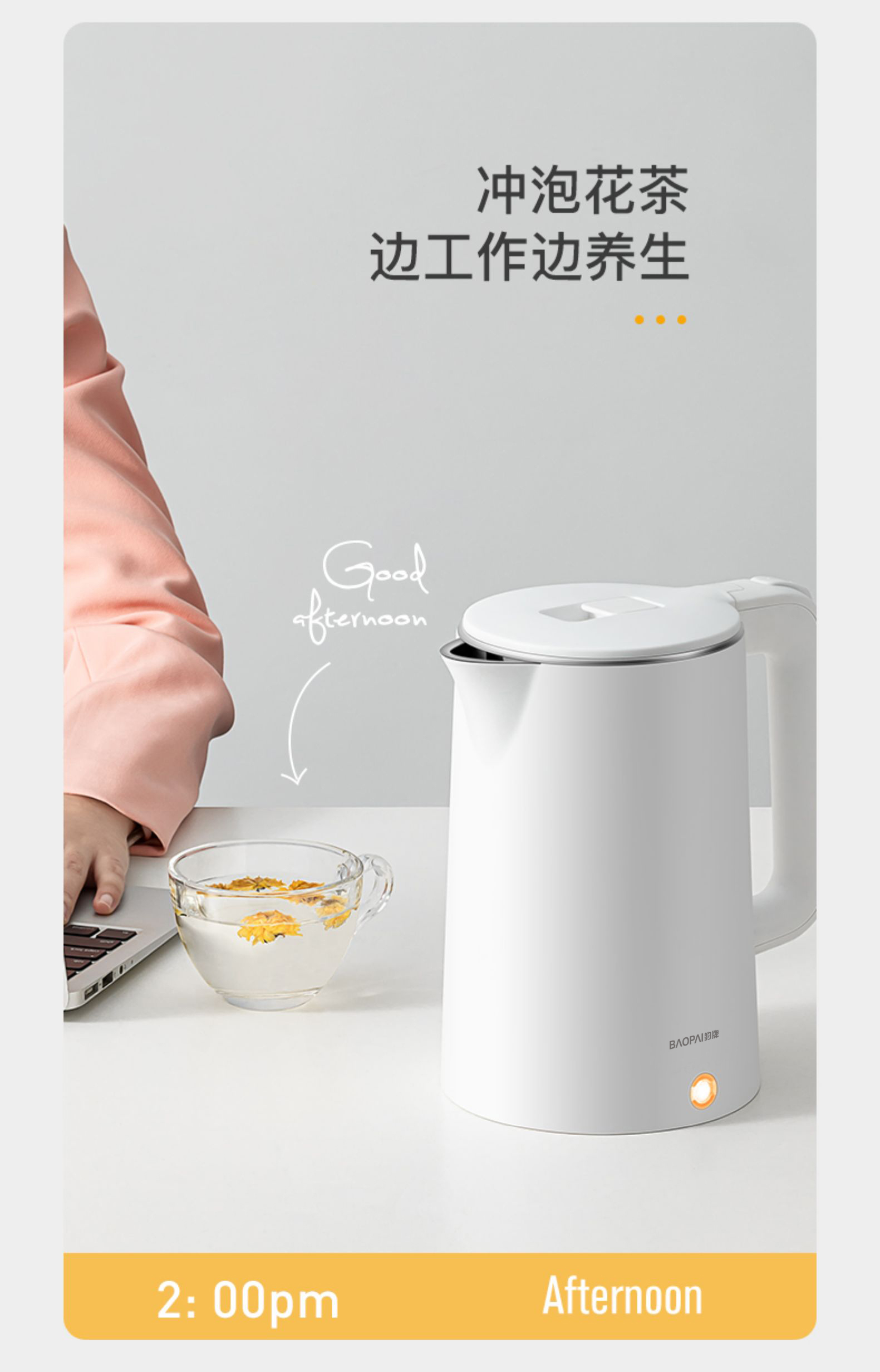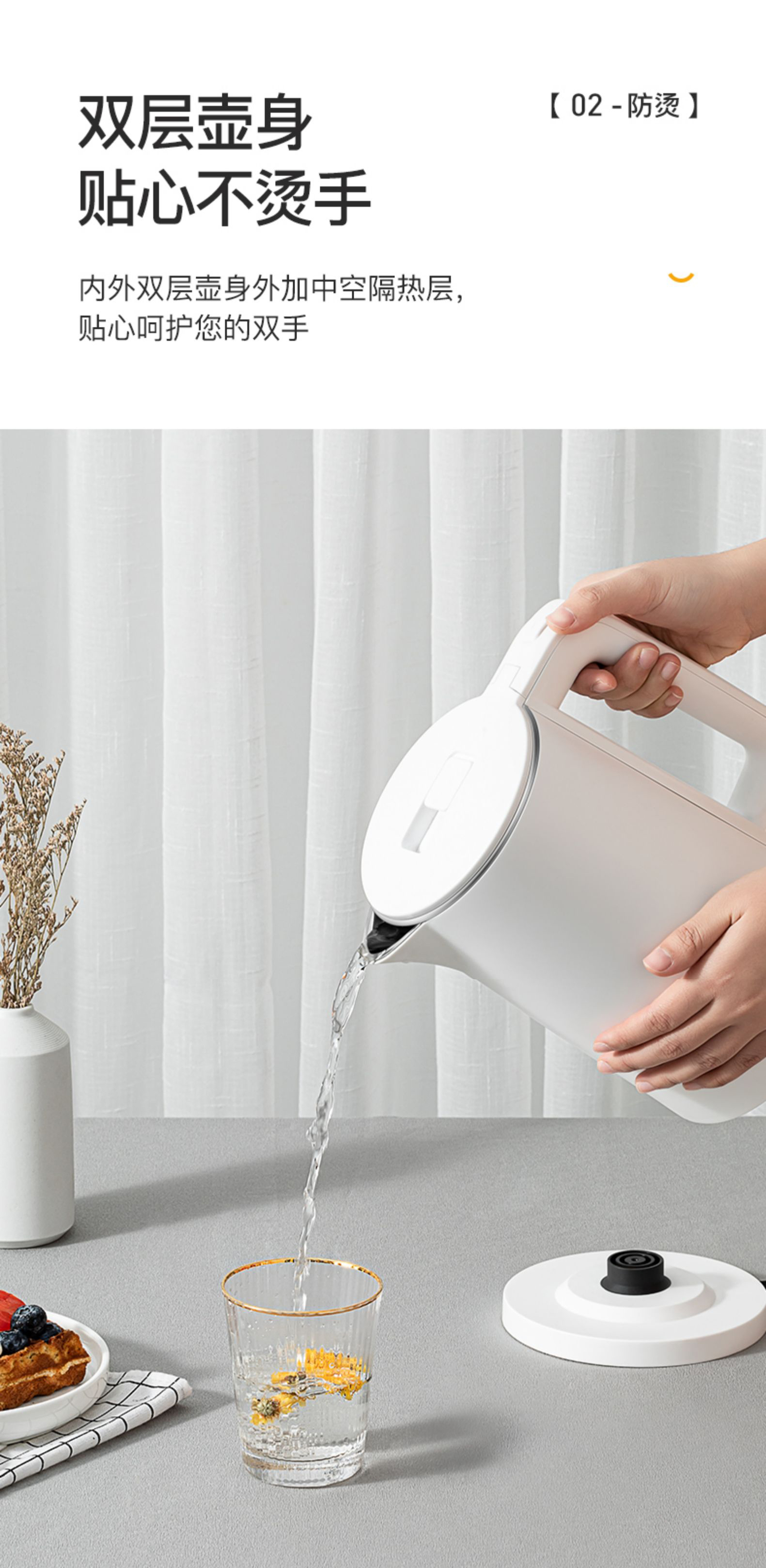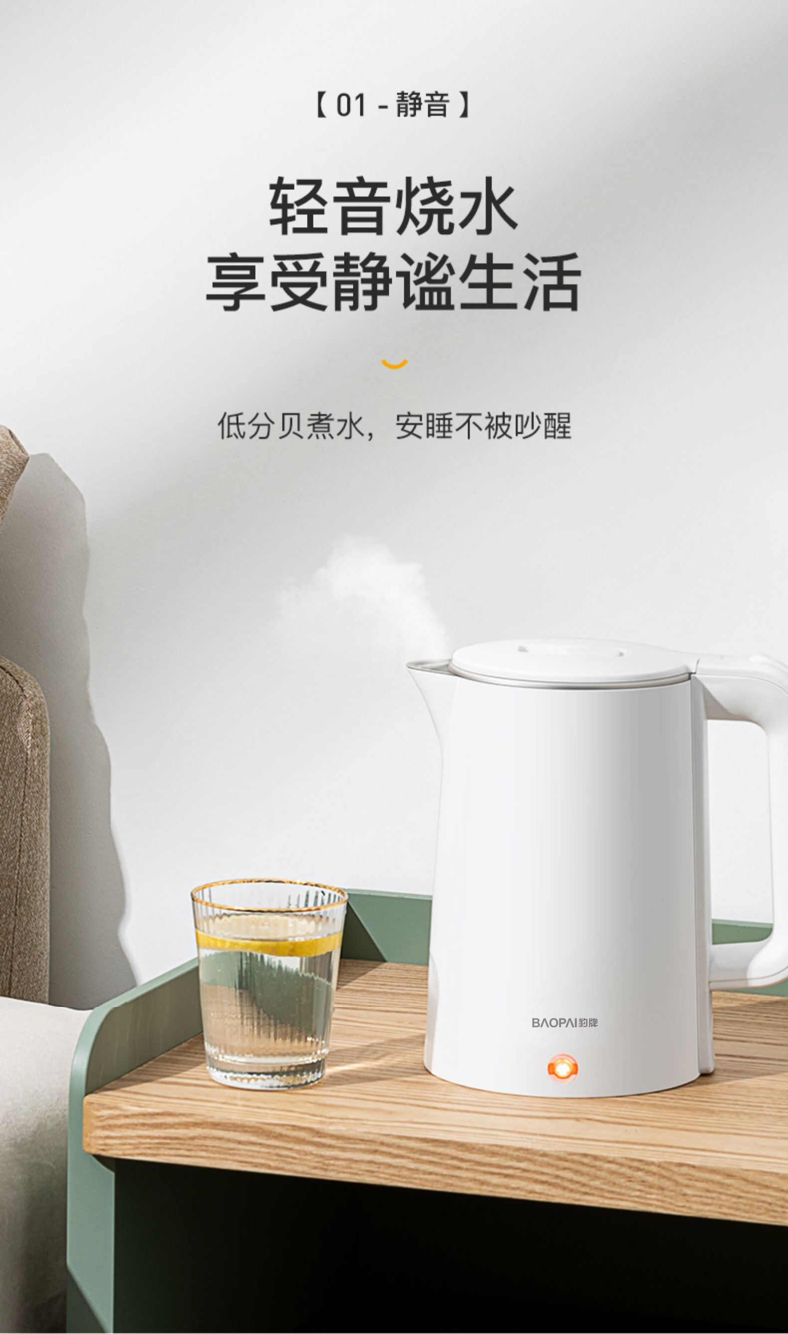 豹牌 1.8L防烫电热水壶1500W大功率 大口径壶口设计BP-4178 本白色