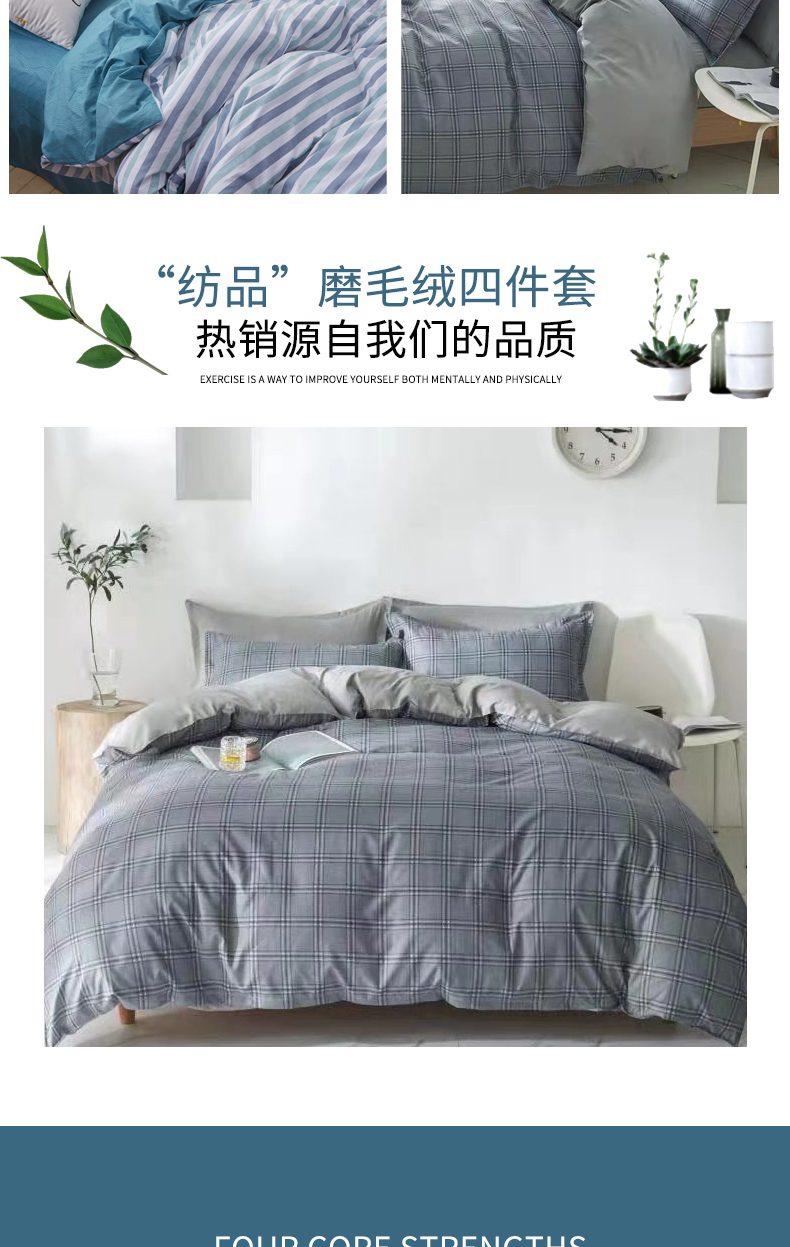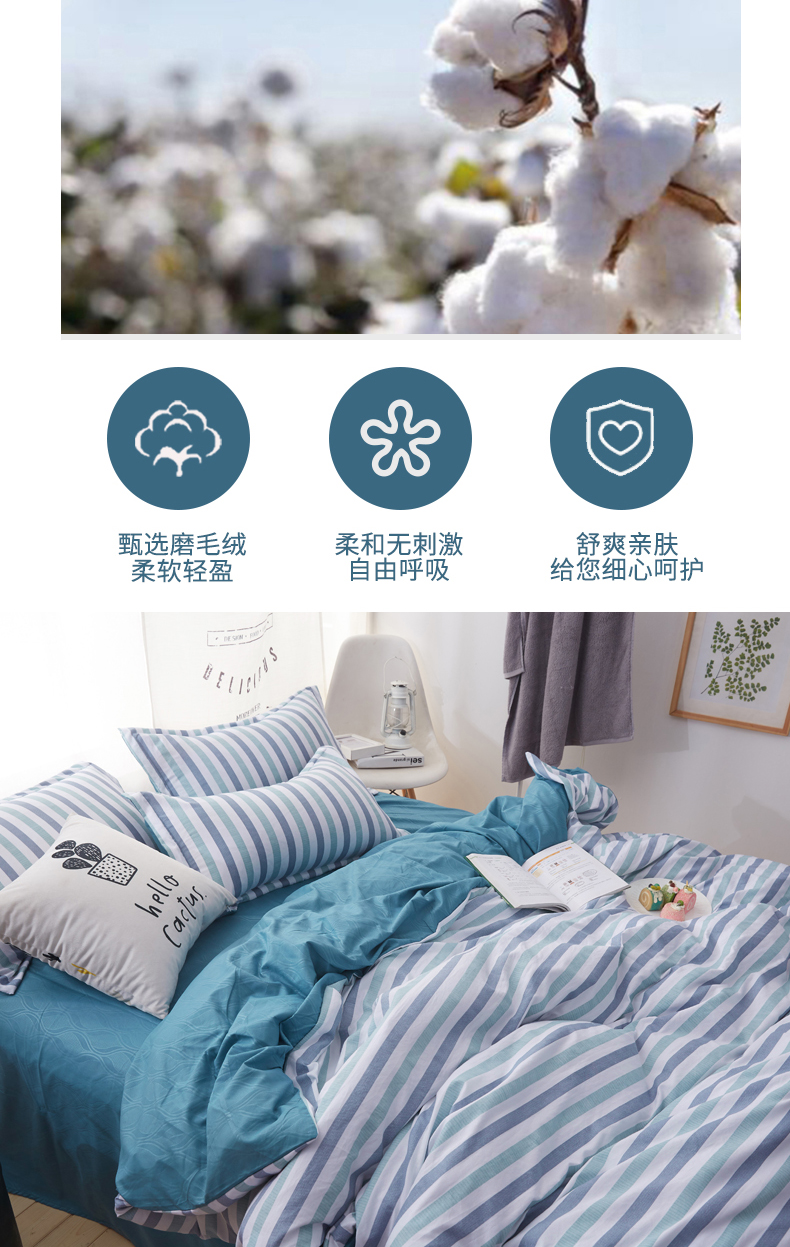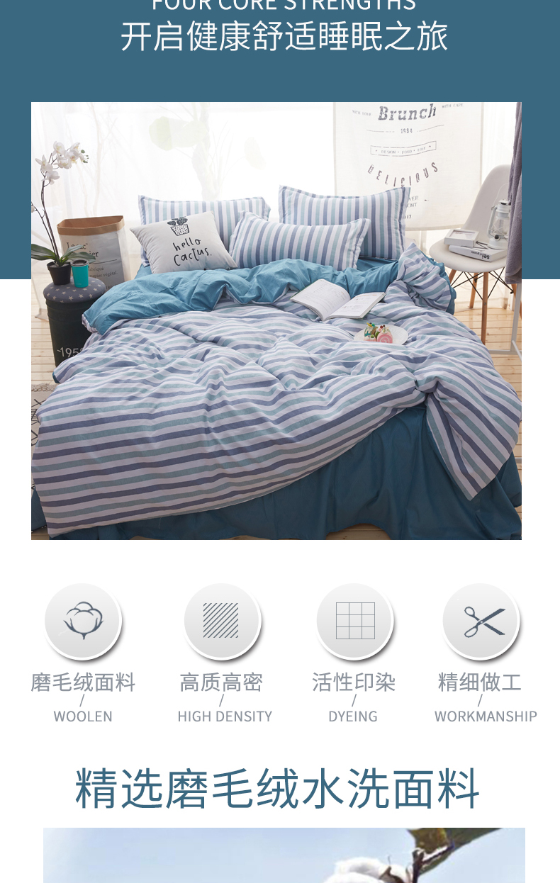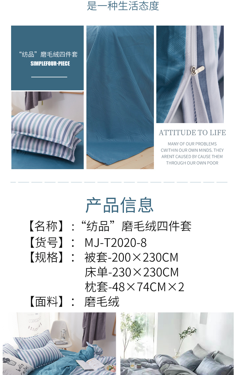 無印良品 晴柔無印“纺品”磨毛绒四件套 MJ-T2020-8 蓝色