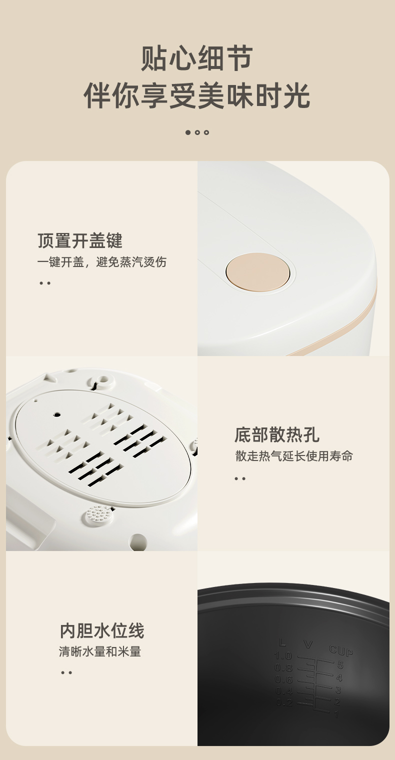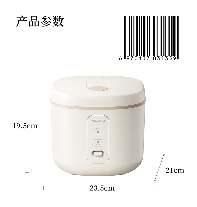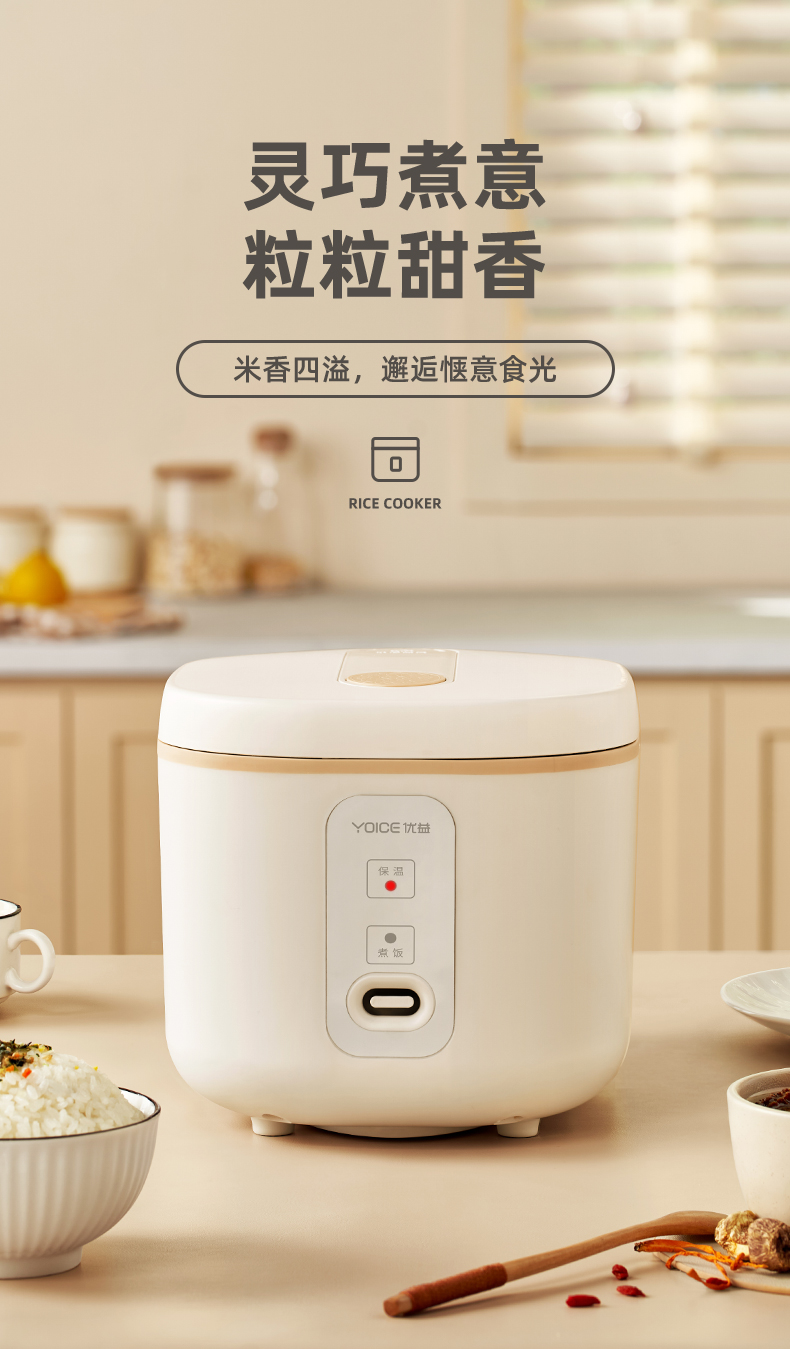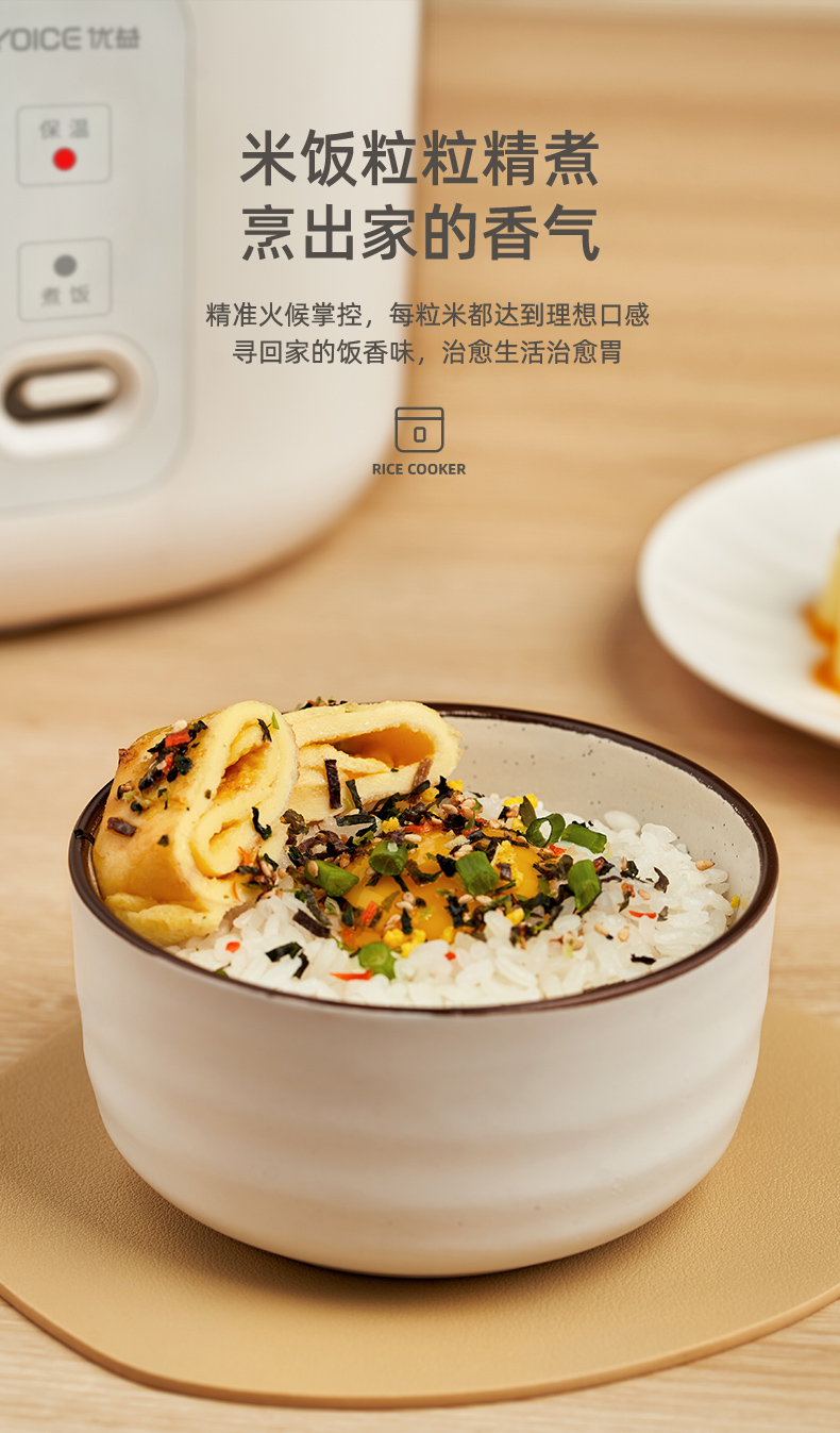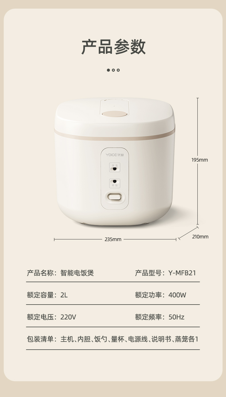优益(Yoice)Y-MFB21(含蒸笼)多功能电饭煲白色2L容量(1-3人) 白色