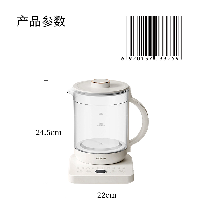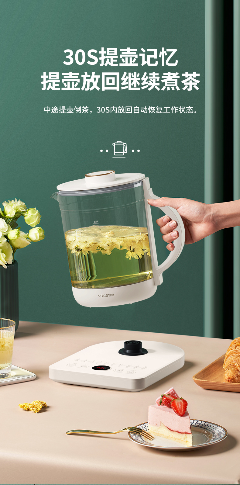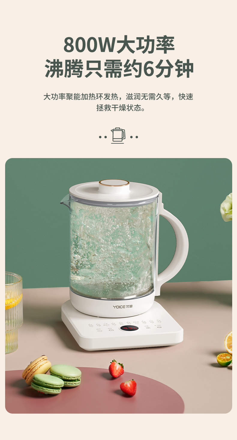 优益(Yoice)Y-YSH30A多功能养生壶 白色家用1.6L容量 白色
