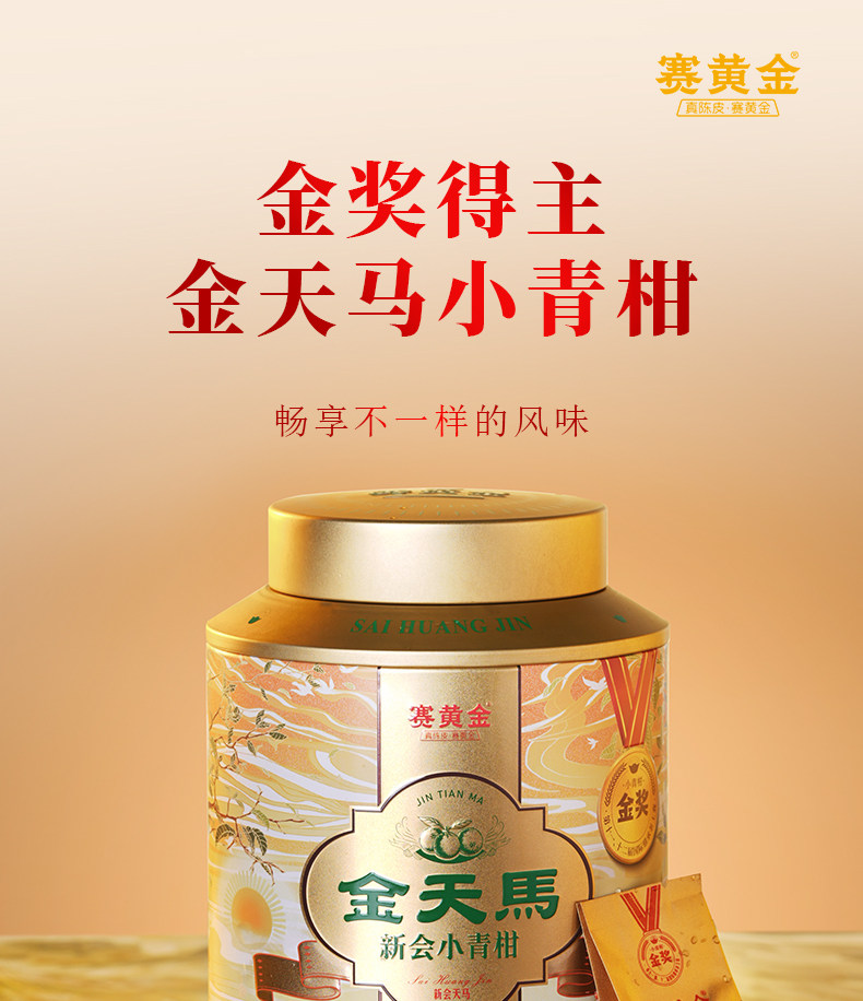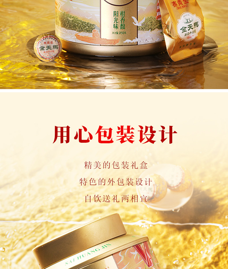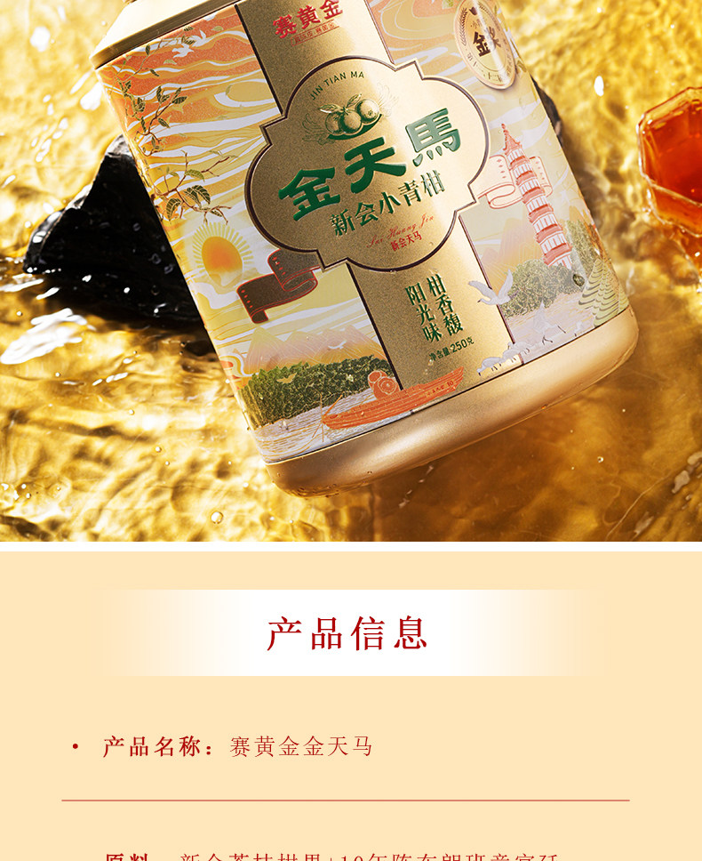 赛黄金 新会金天马产区生晒布朗班章宫廷金芽熟茶 小青柑 250克 金色(单位:罐)