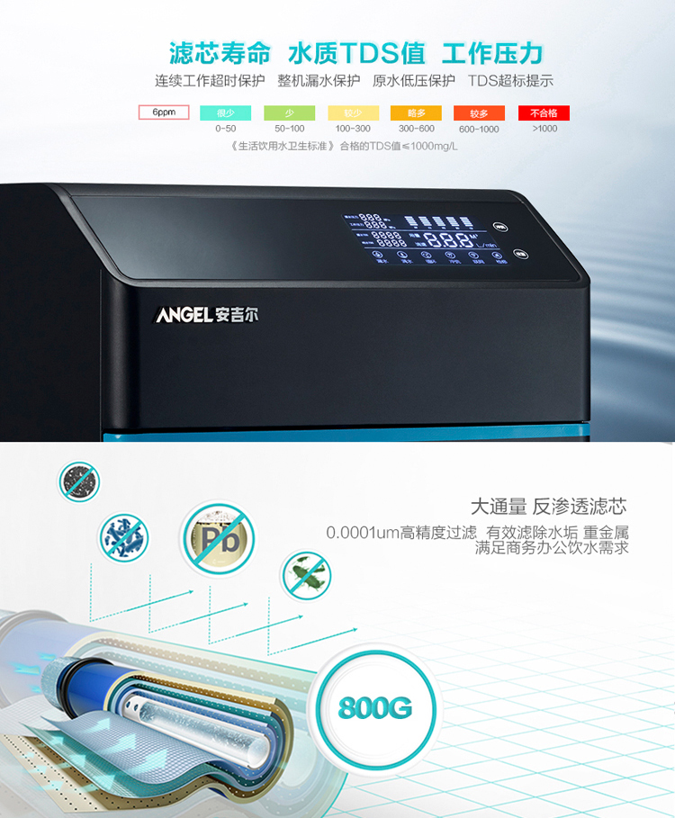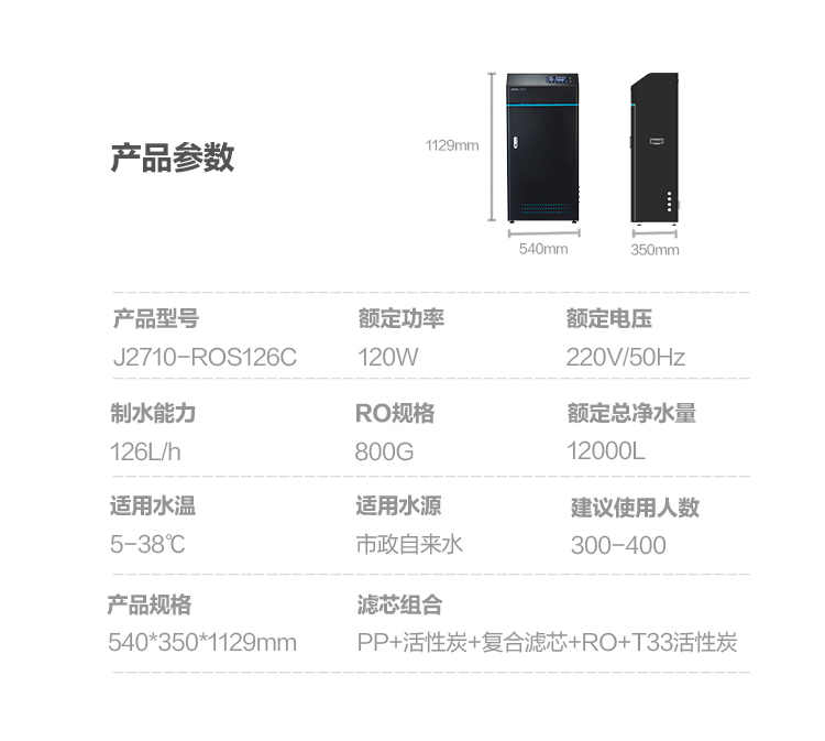 安吉尔商用反渗透 办公写字楼学校 RO大流量钣金机身 商务净水器 中央净化J2710-ROS126C 净水设备 黑色