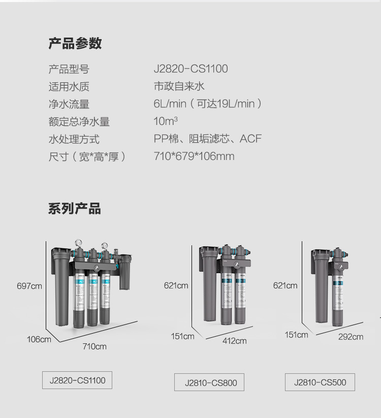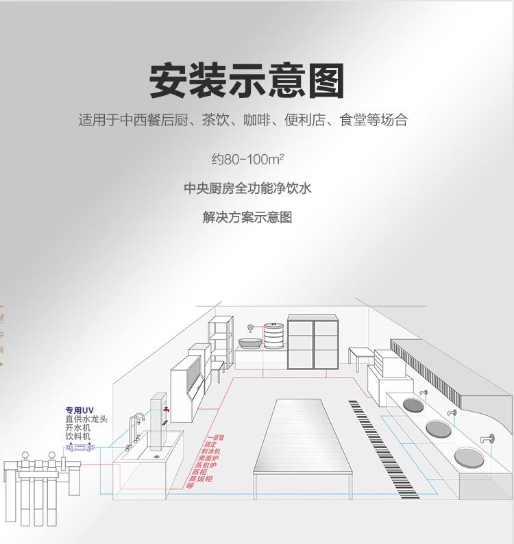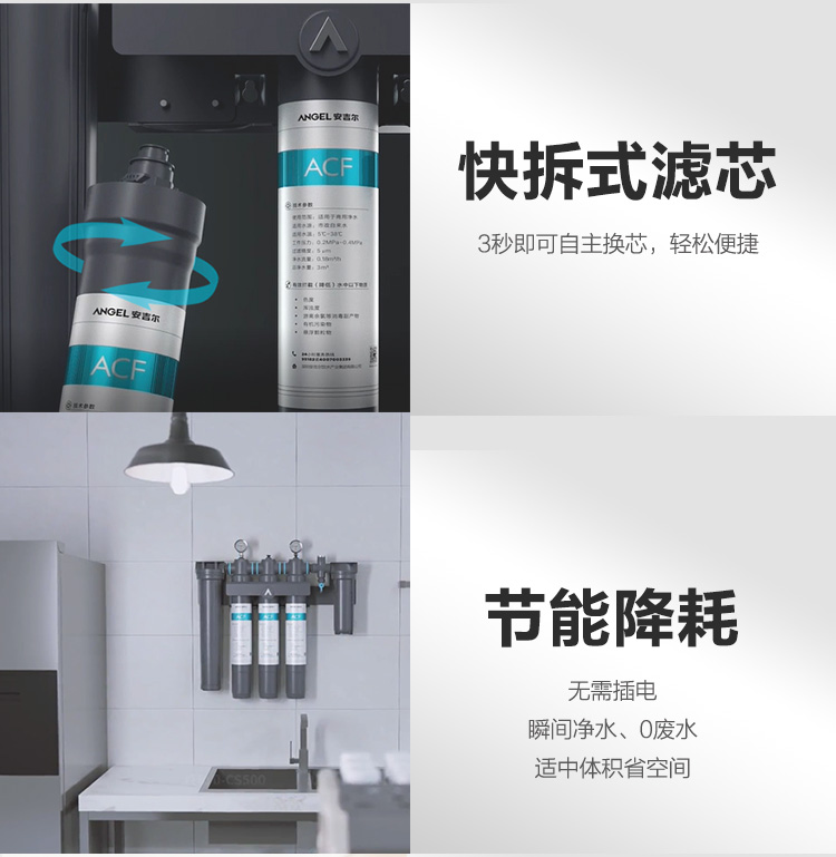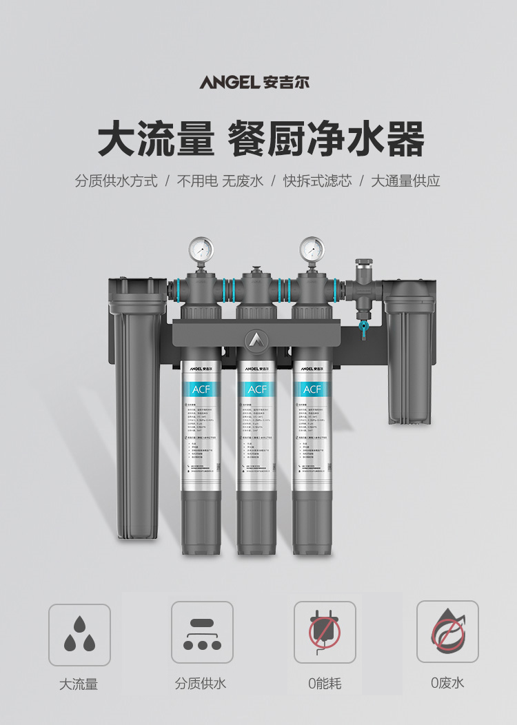 安吉尔商用餐厨系统净水设备 6升/分钟大流量 餐厨净水酒店/餐饮连锁店 J2820-CS1100 铁灰色