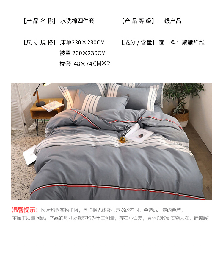 啄木鸟PLOVER家纺卡肤棉四件套-品调1.8m床 +ZMN-PD-01(单位:套) 灰色