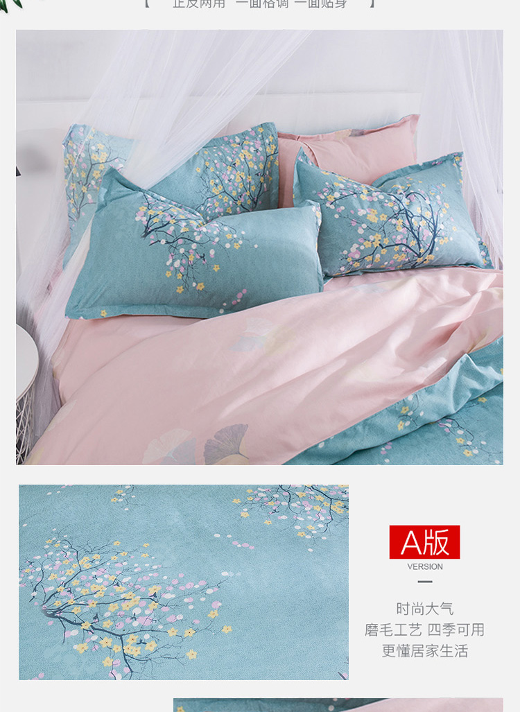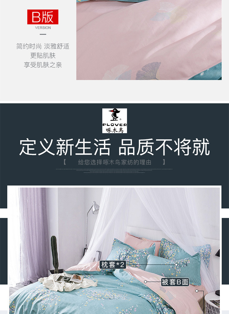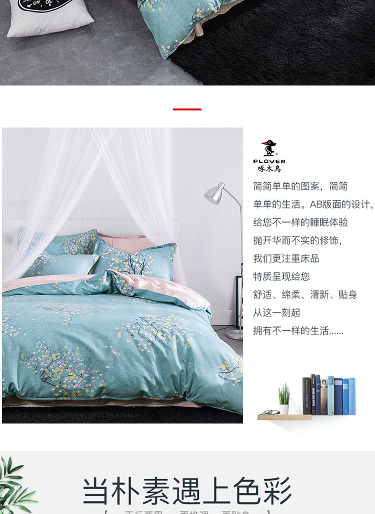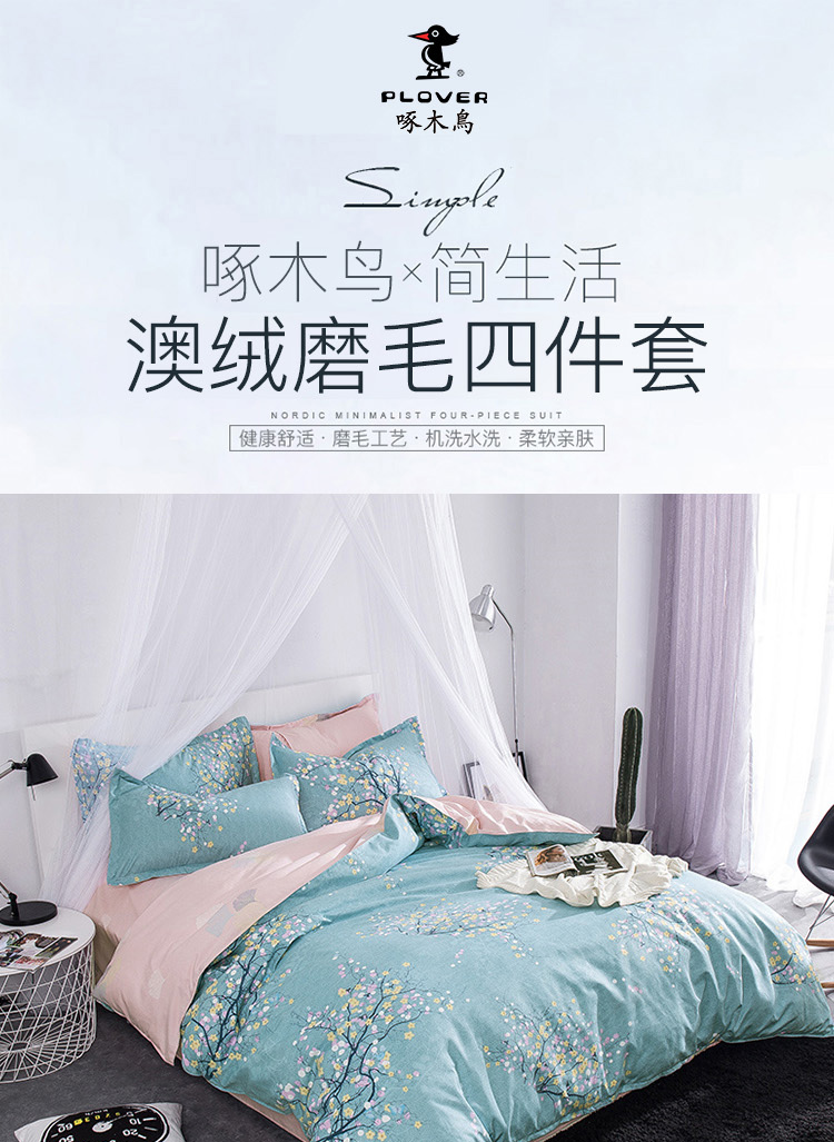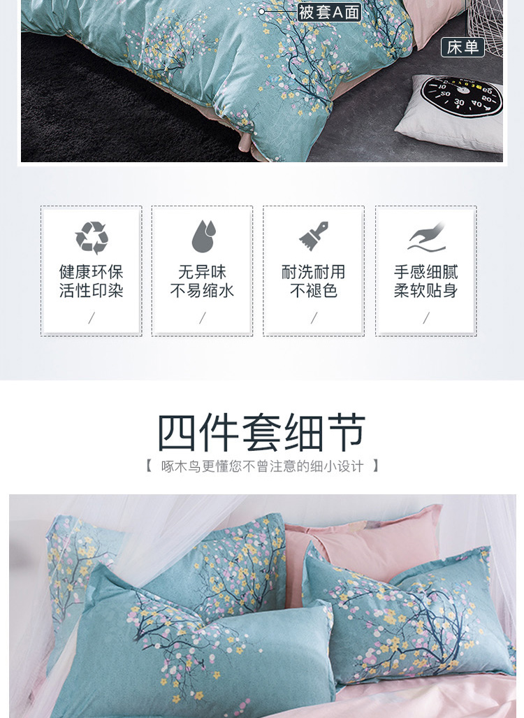 啄木鸟PLOVER家纺奥绒磨毛春暖花开四件套+ZMN-AR-03(单位:套) 浅杉绿