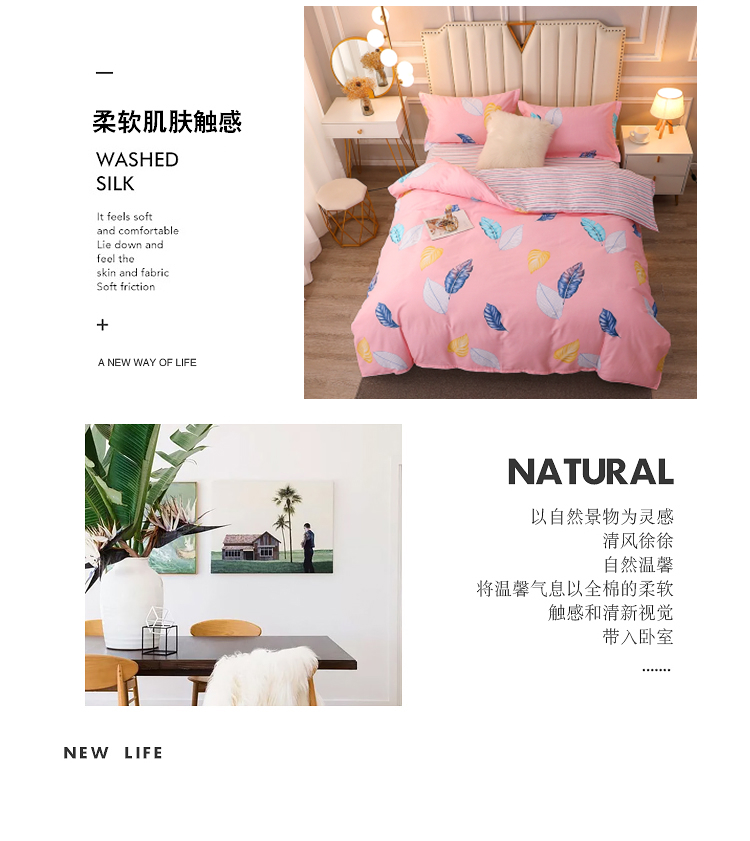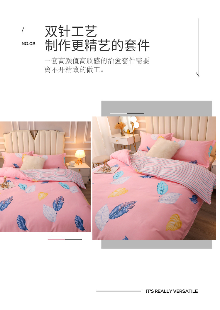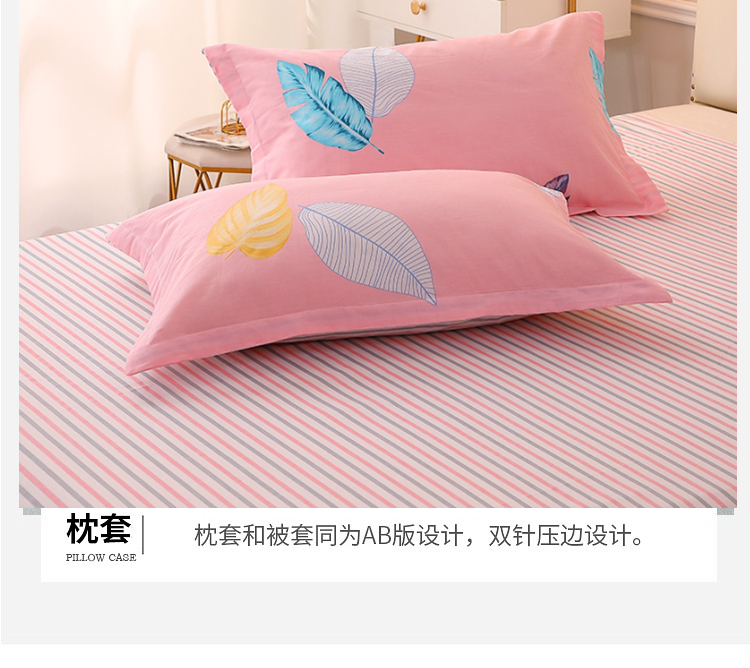 啄木鸟PLOVER家纺纯棉叶羽相思纯棉四件套+ZMN-CM-12 粉色