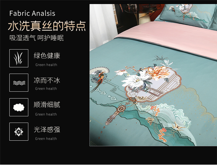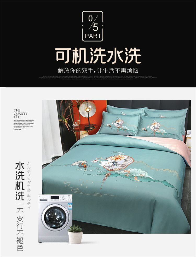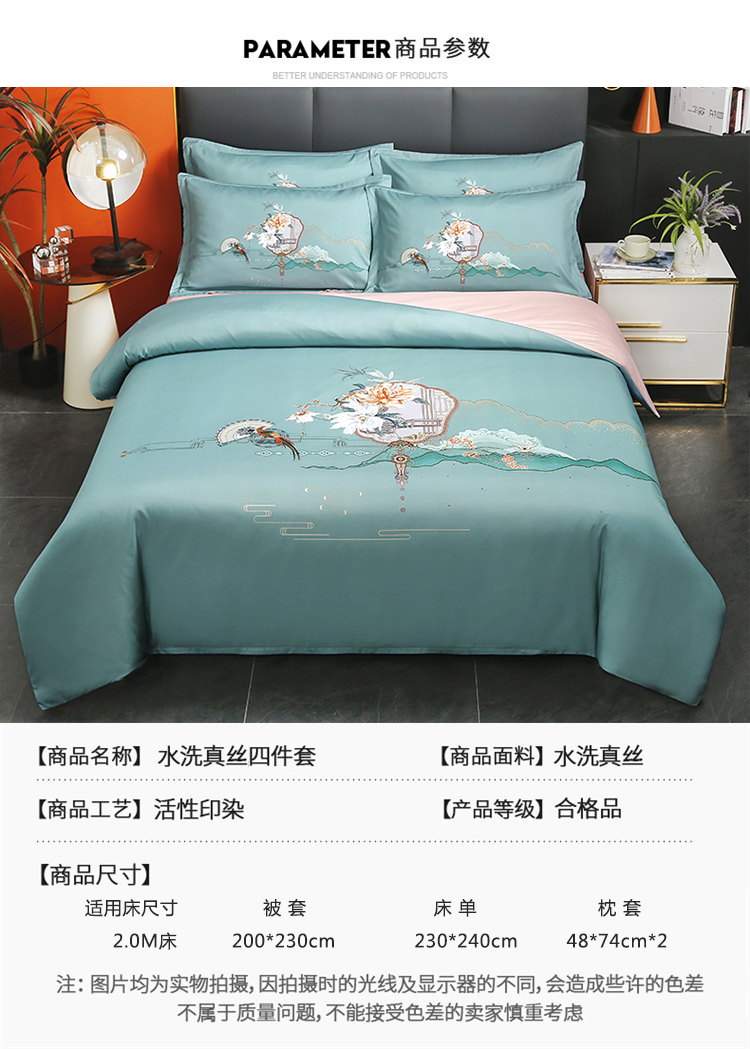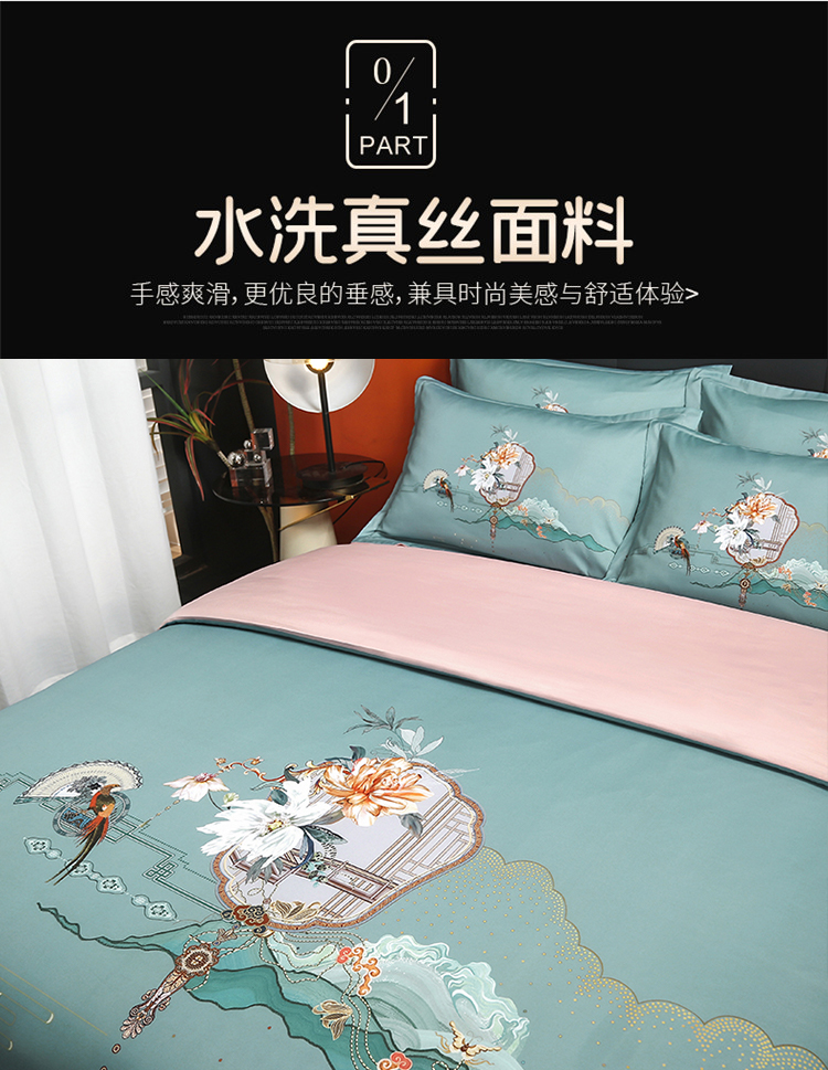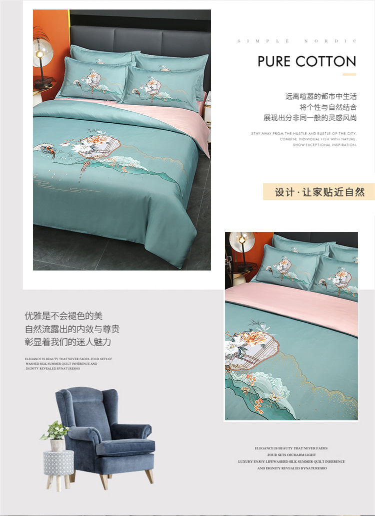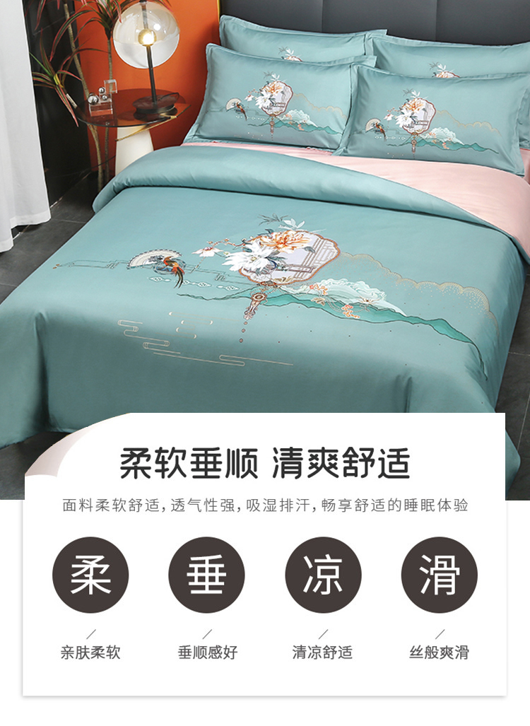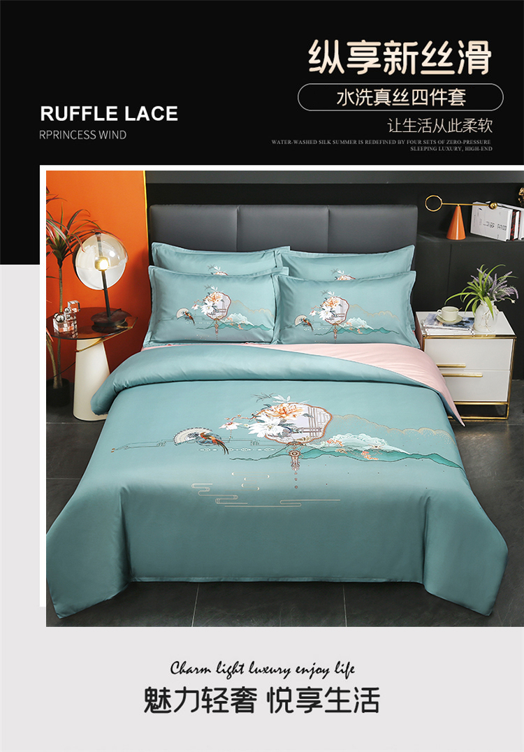 啄木鸟PLOVER家纺风花雪月水洗真丝绣花四件套+ZMN-FHXY-01 天蓝色