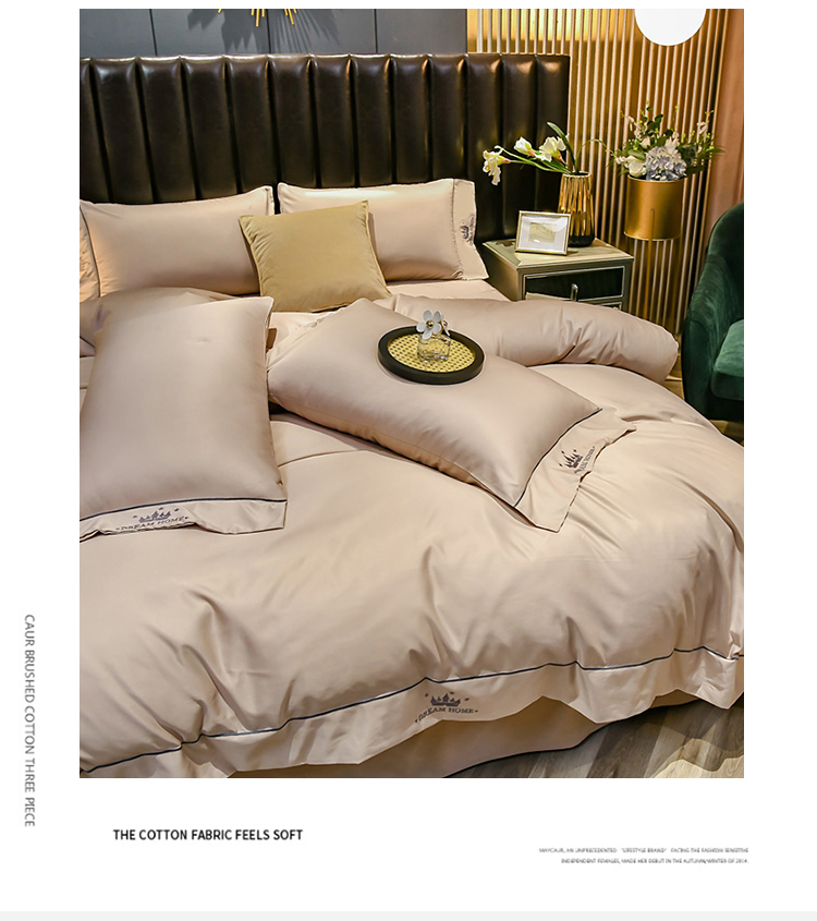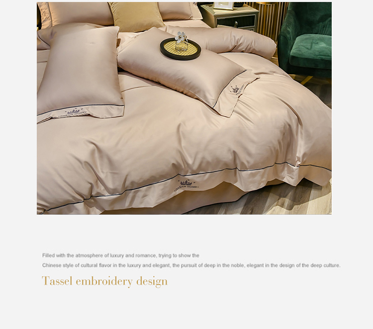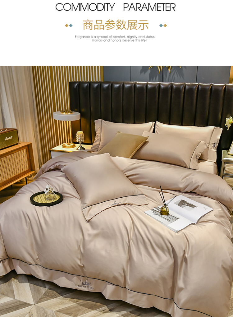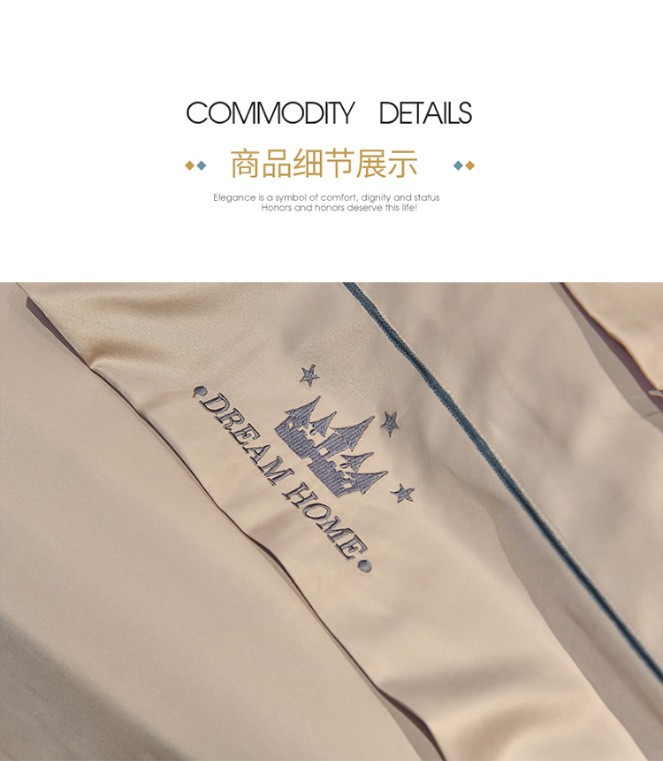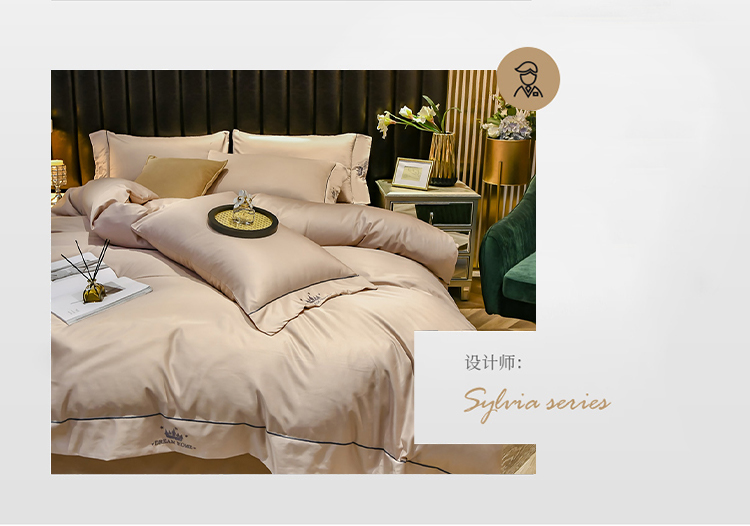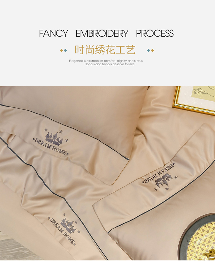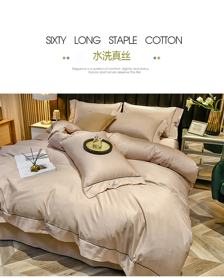 啄木鸟PLOVER家纺水洗真丝绣花四件套-卡其+ZMN-SXZS-01 香槟色