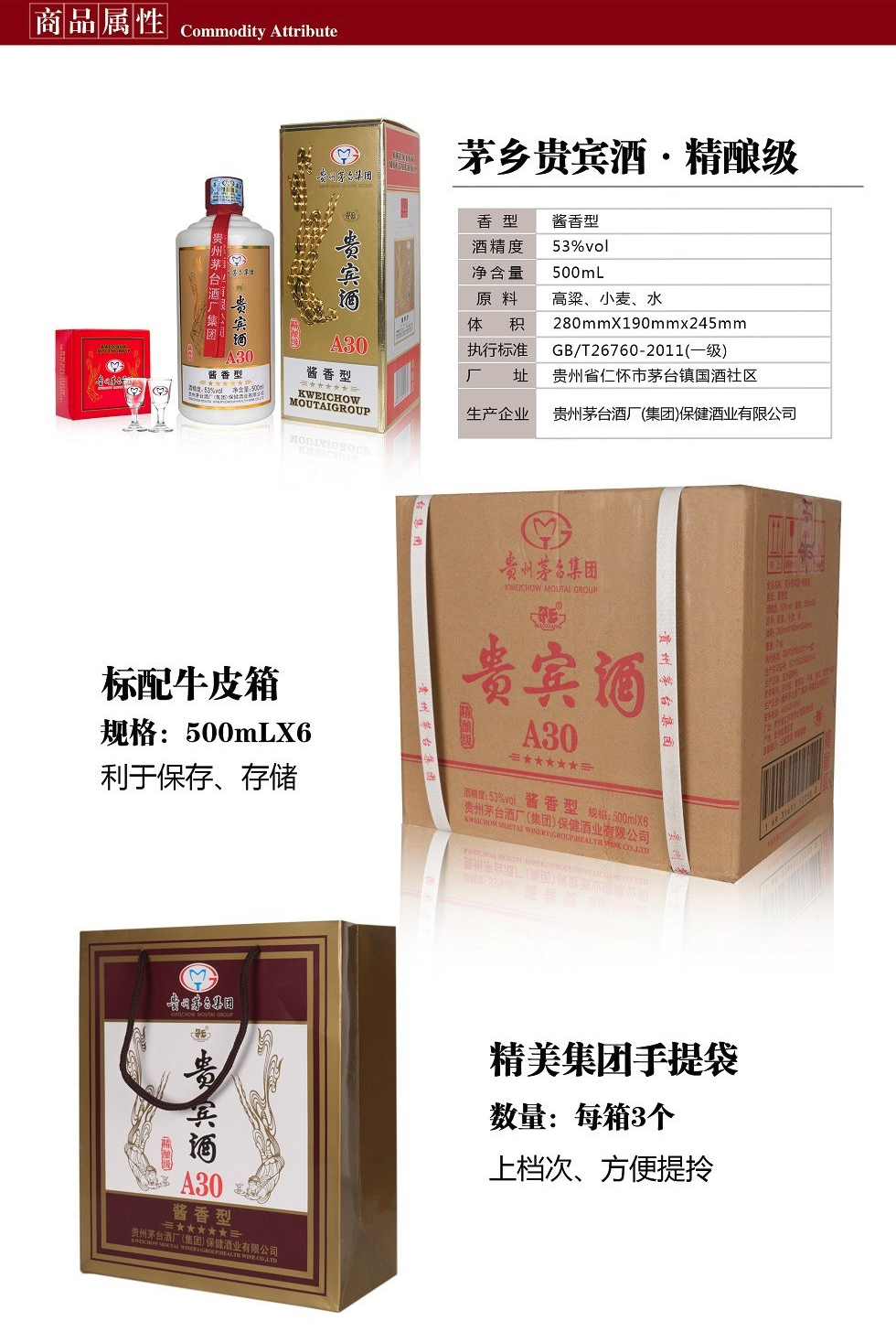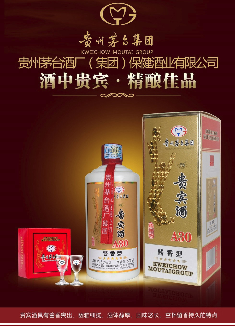 贵州茅台集团 茅乡贵宾酒 A30精酿级 53度酱香型白酒 500ml 1瓶 1瓶