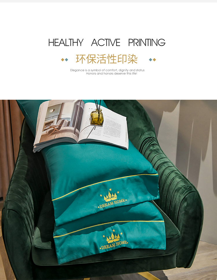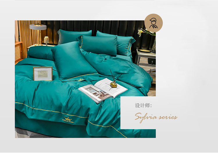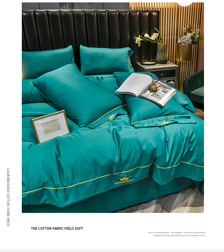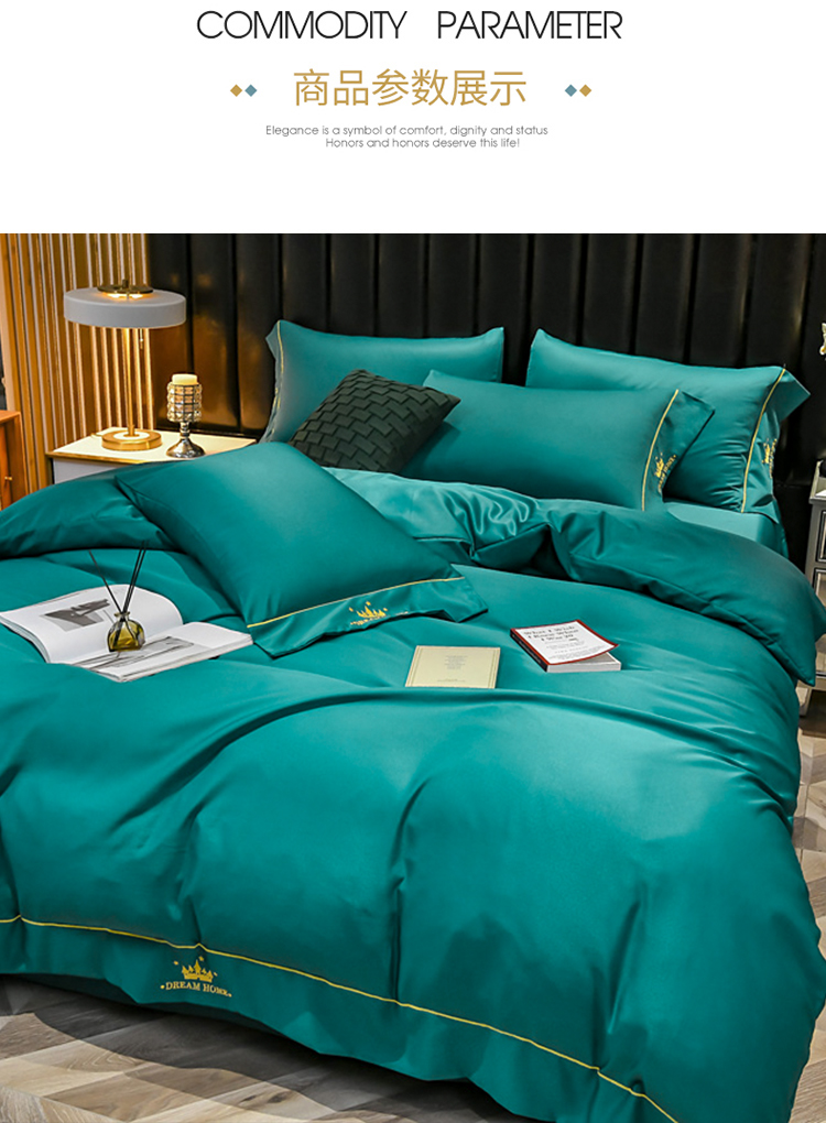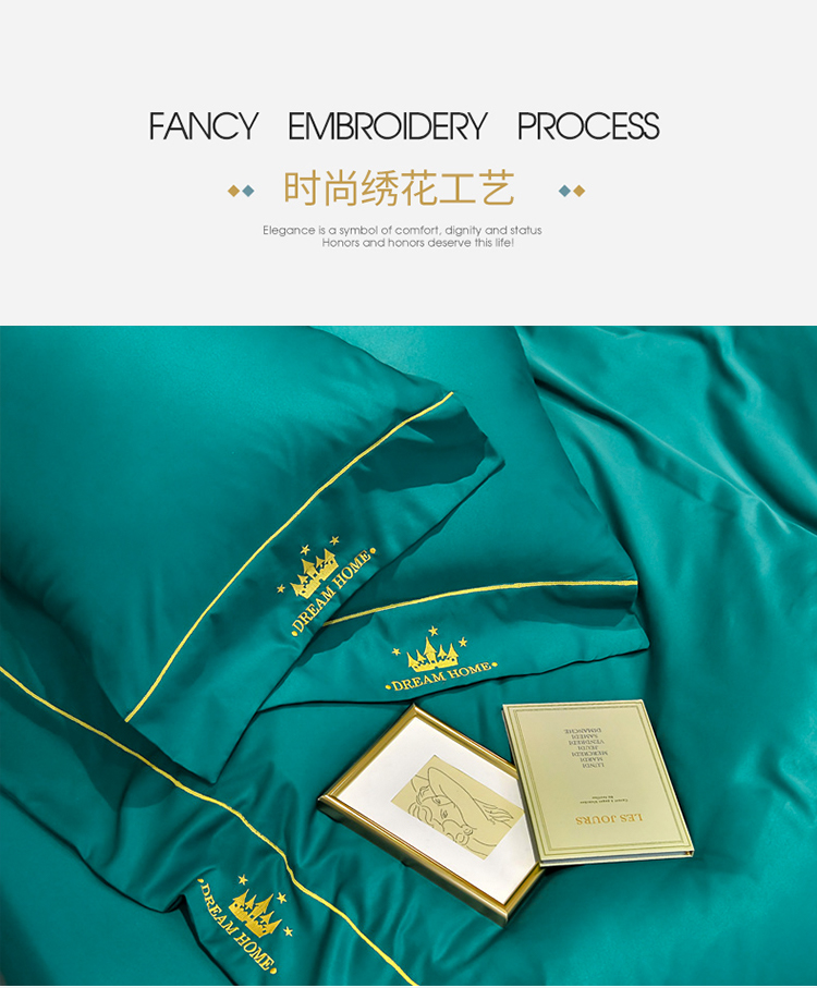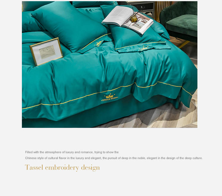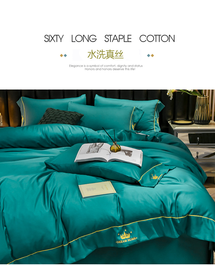 啄木鸟PLOVER家纺水洗真丝绣花四件套-墨绿+ZMN-SXZS-02 雾雨绿