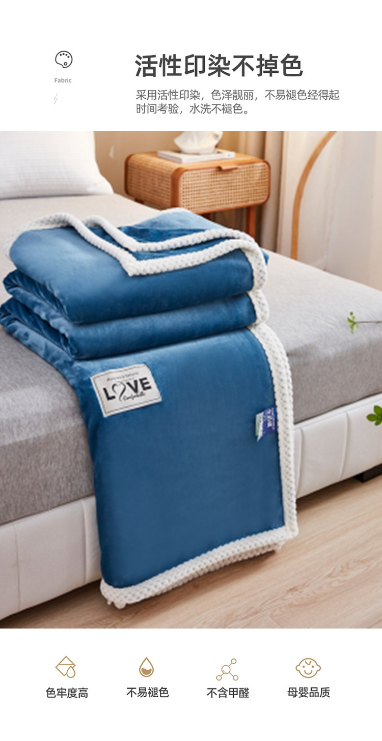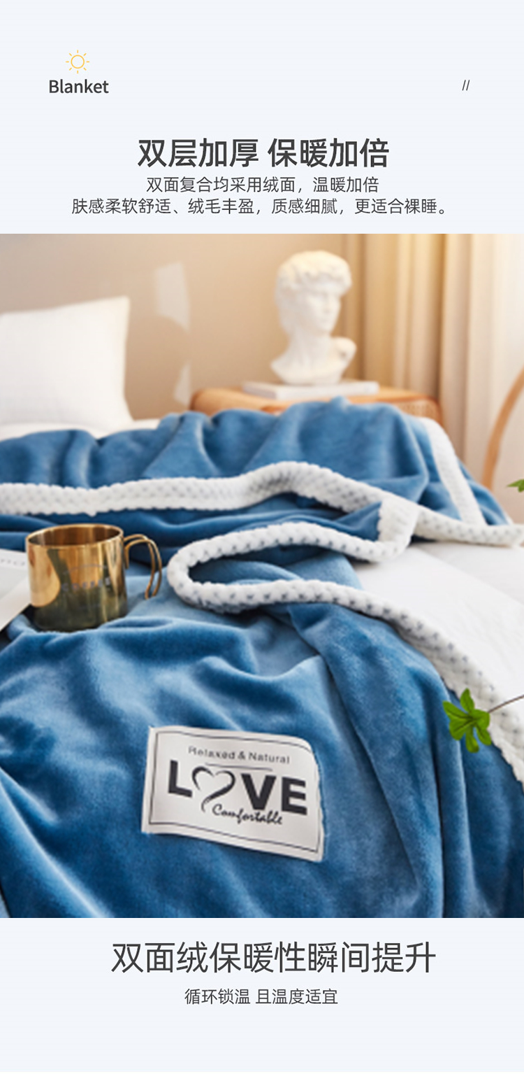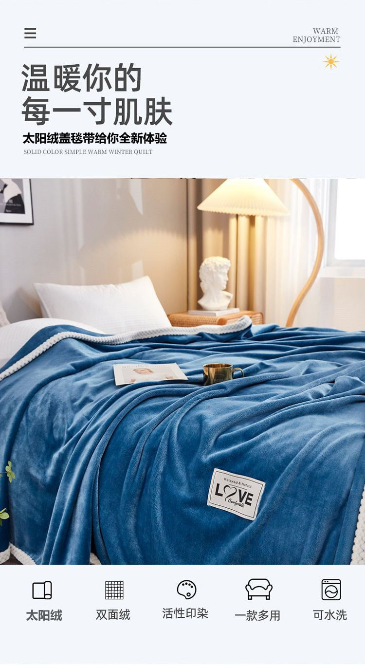 啄木鸟PLOVER家纺太阳绒毯子-湖蓝+ZMN-RT-08 水蓝色