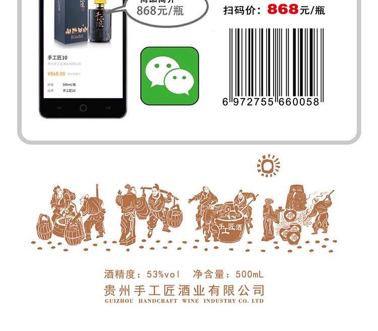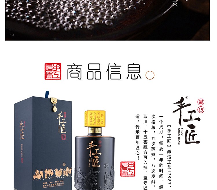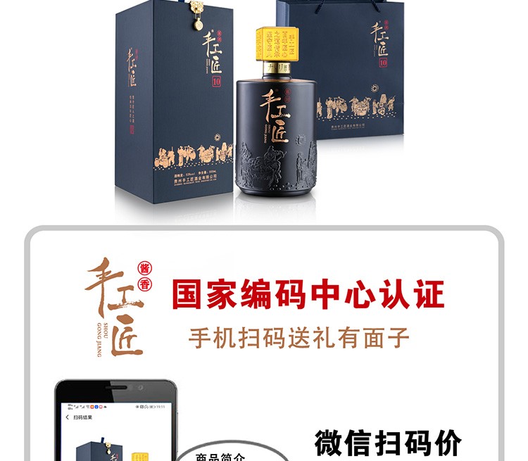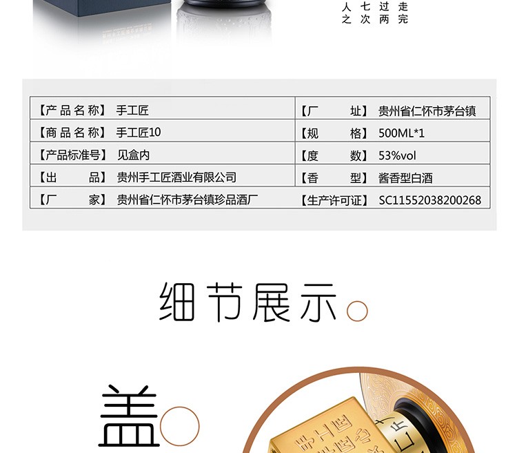 贵州酱香型粮食白酒手工匠10年高度53度白酒收藏送礼 1瓶装 1瓶