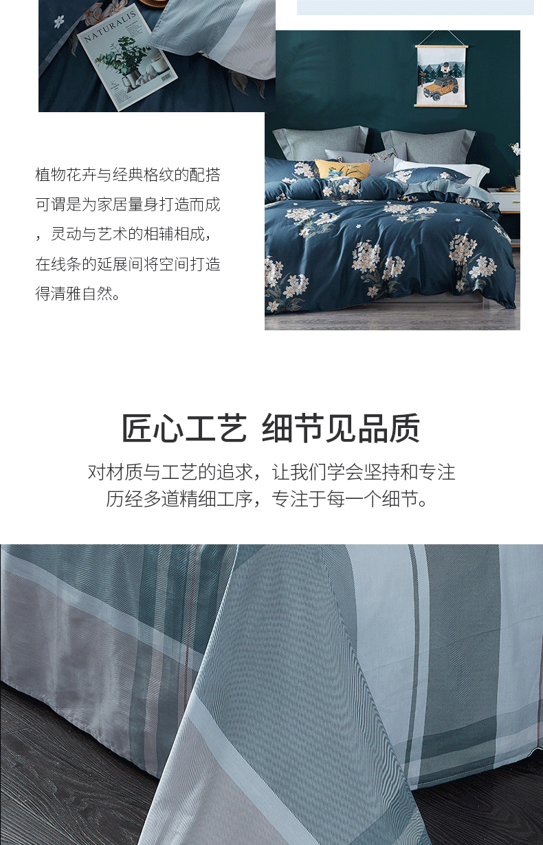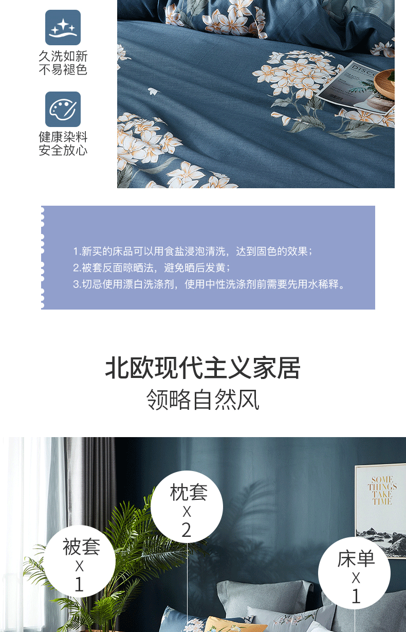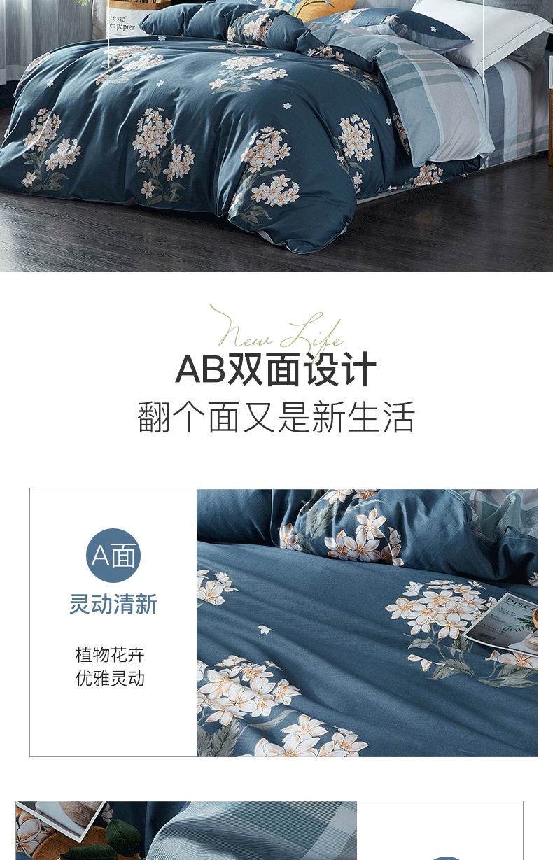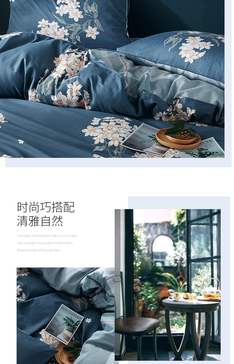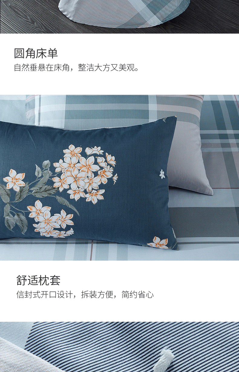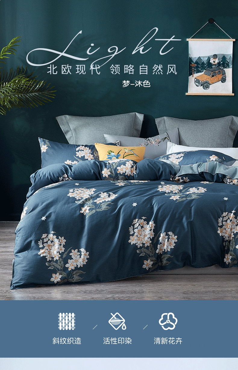 梦洁纯棉印花四件套 梦·沐色200*230cm 深蓝色