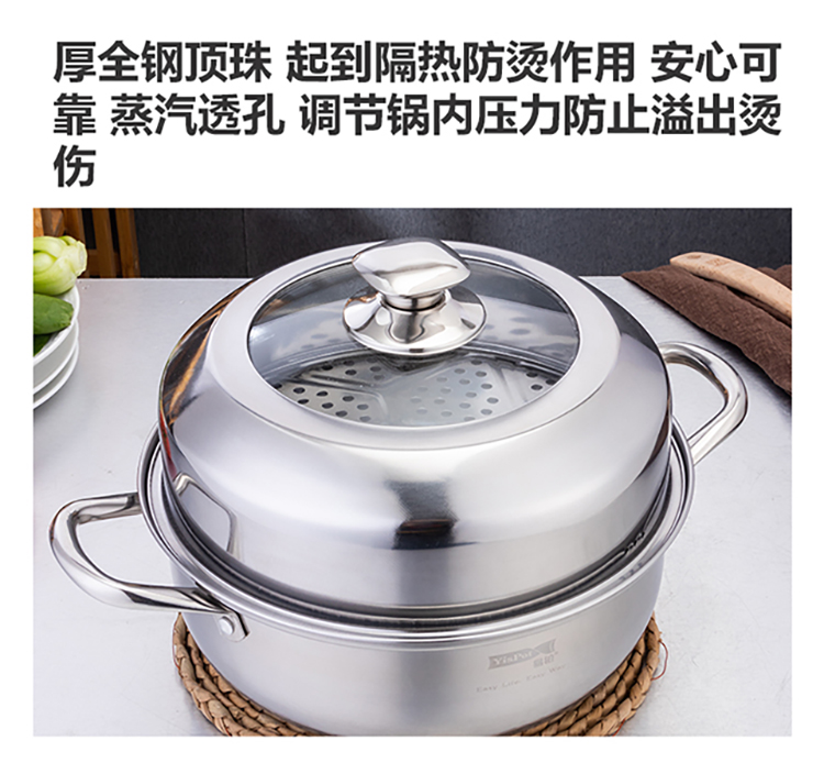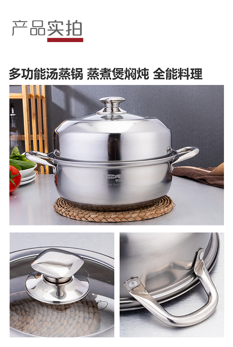 易铂 卡普尔汤双层蒸锅 28cm YP-8035 不锈钢色