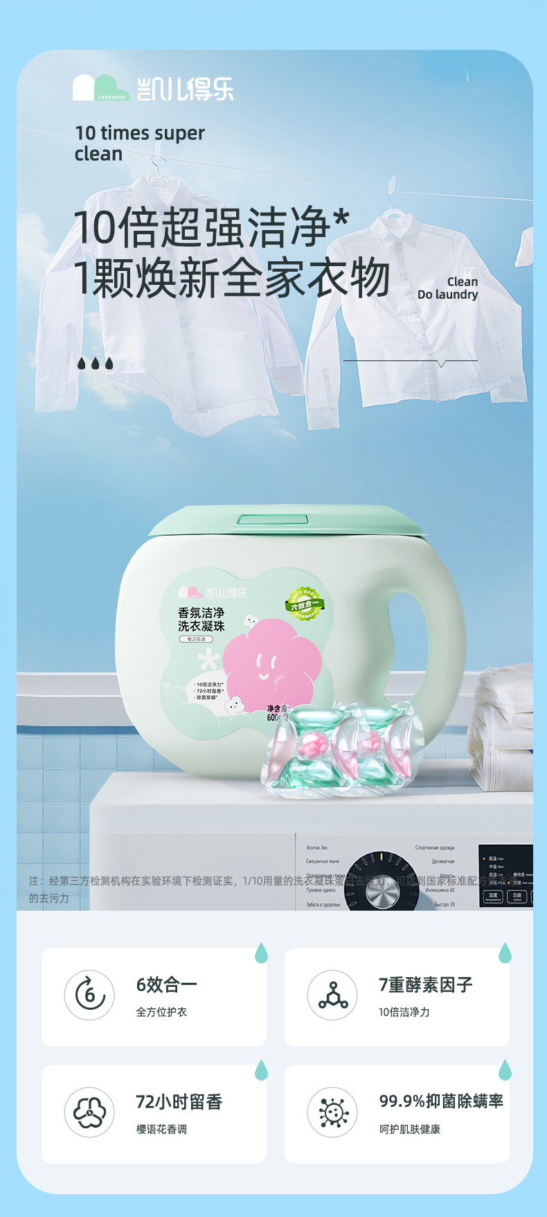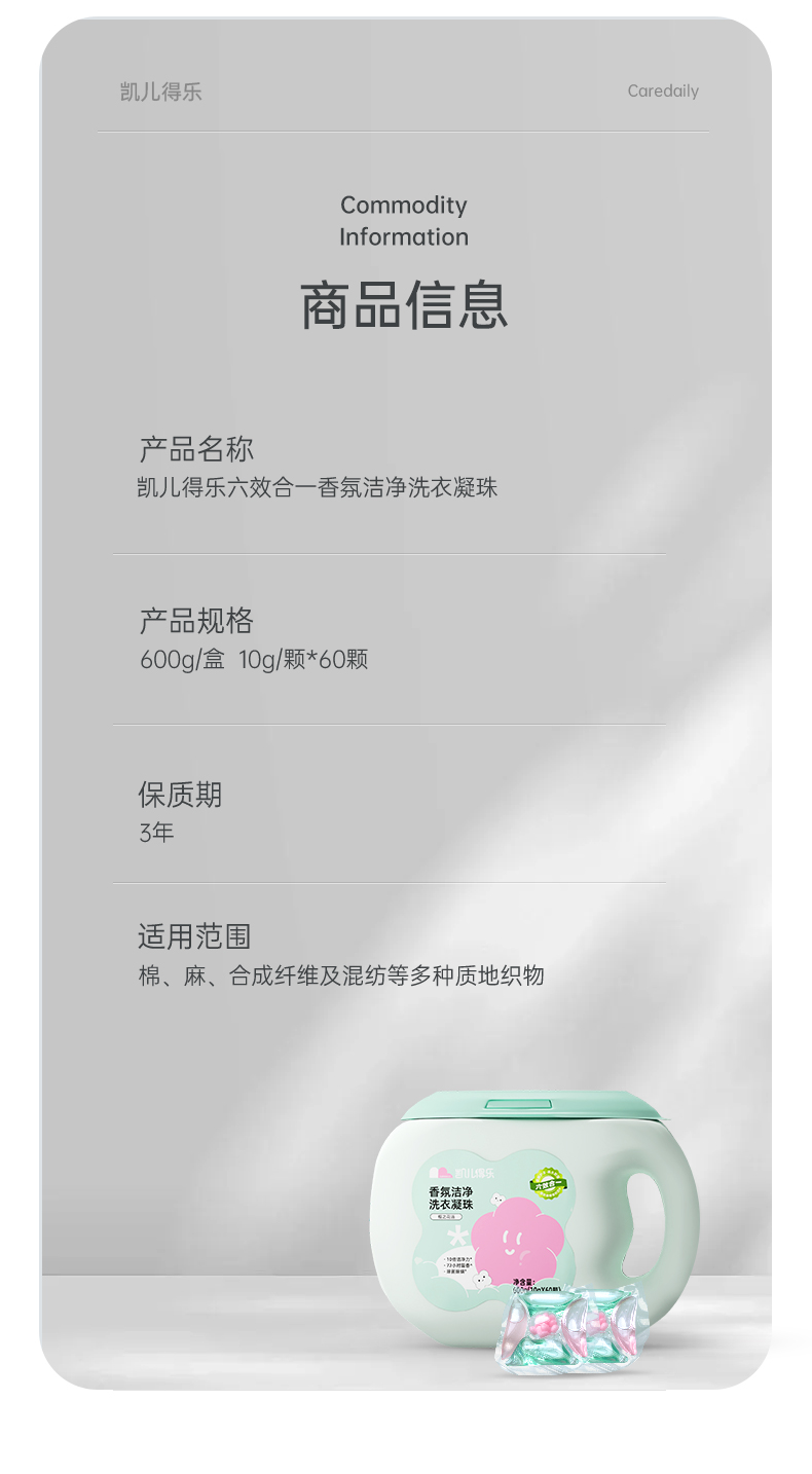 凯儿得乐(care daily) 洗衣凝珠 6效合一 600g/盒,10g/颗*60颗,3盒/箱 绿色(单位:箱)