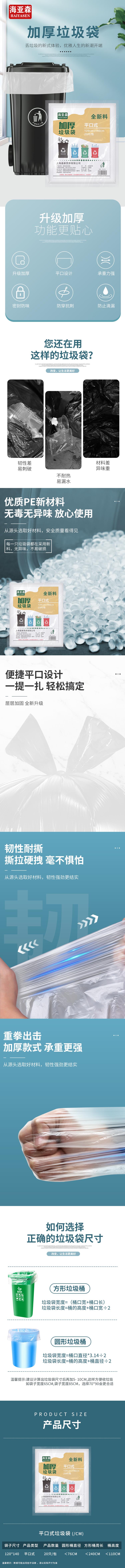 海亚森(HAIYASEN)TK-8035 加厚型白色垃圾袋 120cm*140cm 20只/包 白色