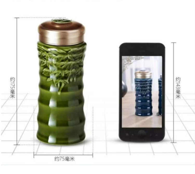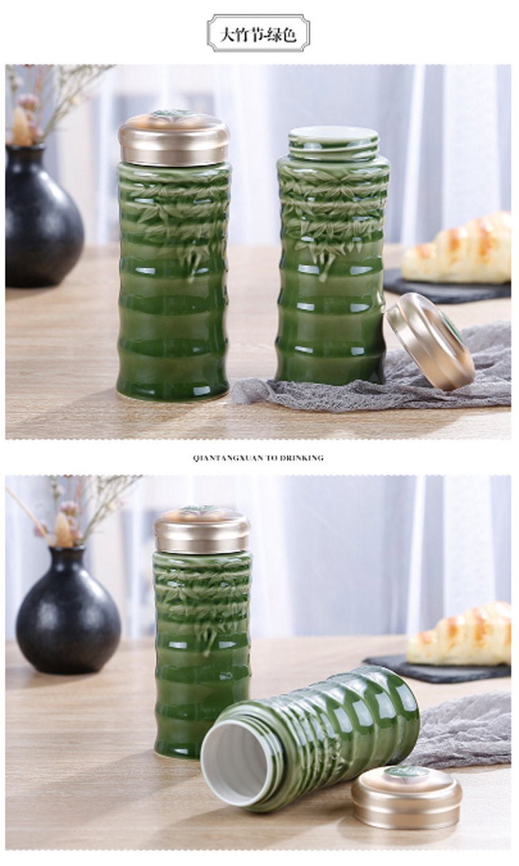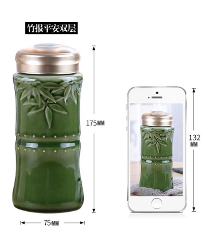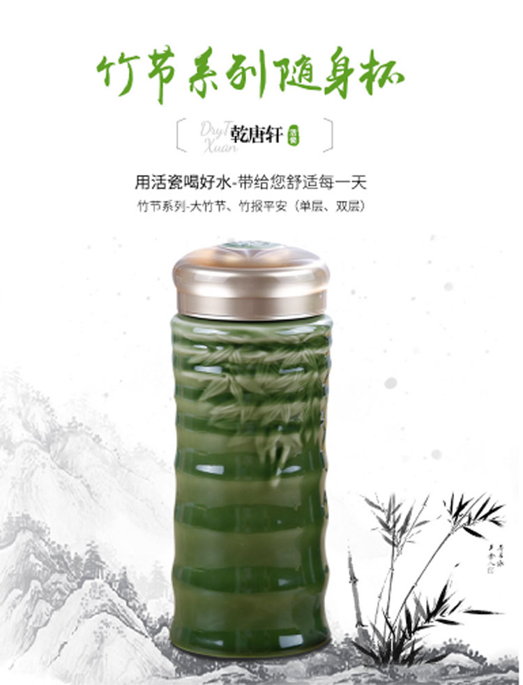 乾唐轩 竹节随身杯(大)330ml(双层) 耀州绿