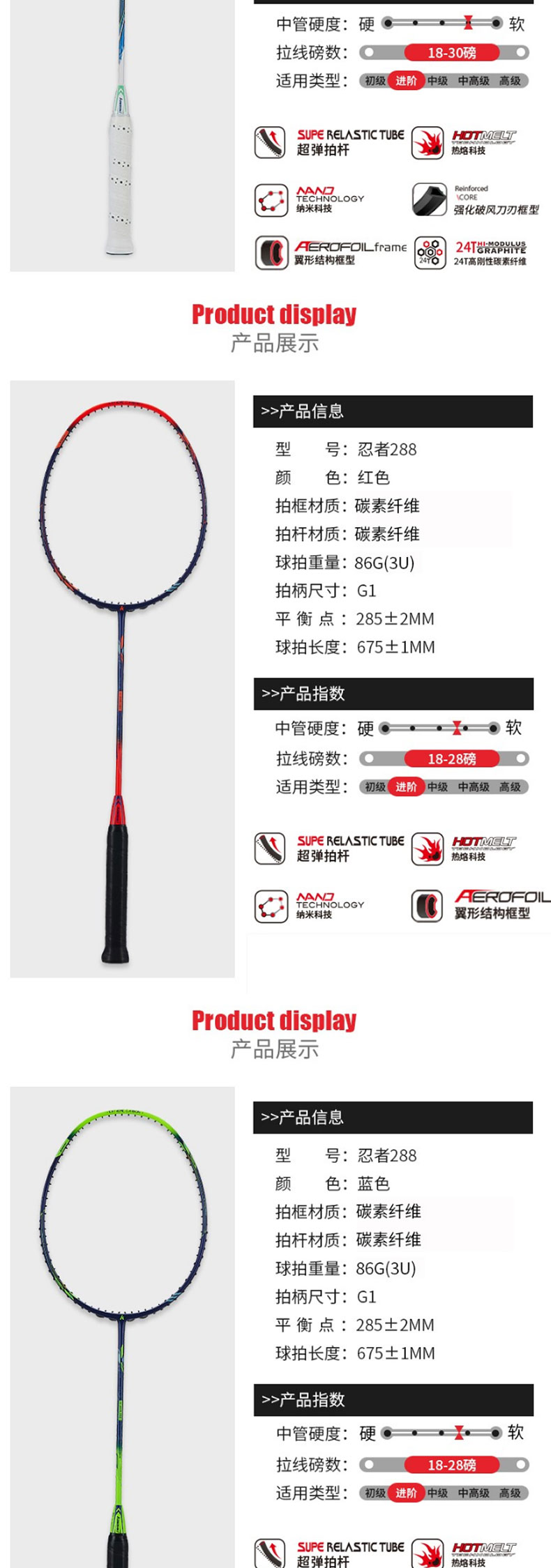 川崎(KAWASAKI)正品羽毛球拍单拍全碳素超轻耐用型进攻型羽拍(穿线服务) 【忍者288 全碳素单拍】 红色