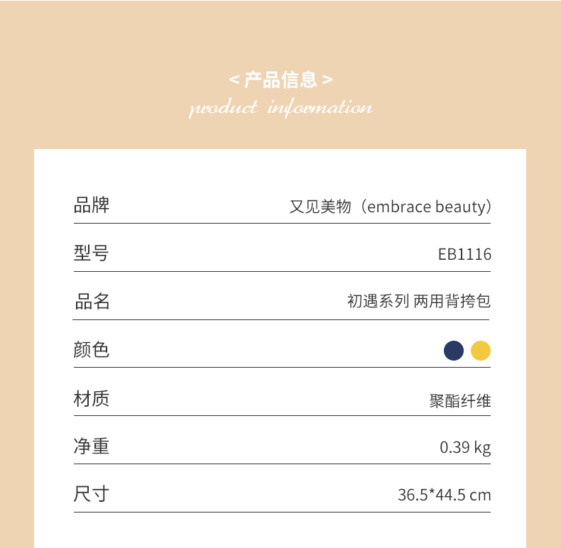 又见美物(EmbraceBeauty)初遇系列双面两用背挎包EB1116(单位:个)黄蓝色 宝石蓝