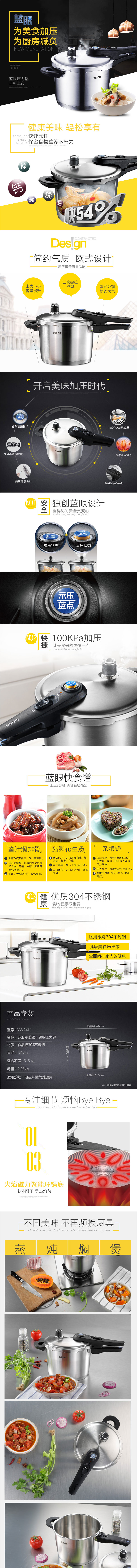 苏泊尔(SUPOR)7L·24cm蓝眼不锈钢压力锅/YW24L1(个) 不锈钢色