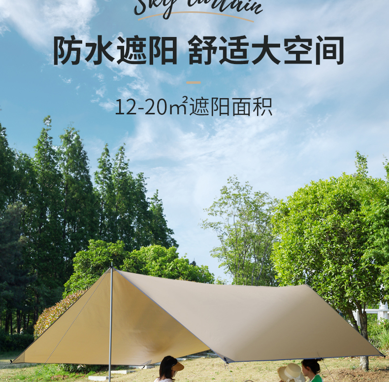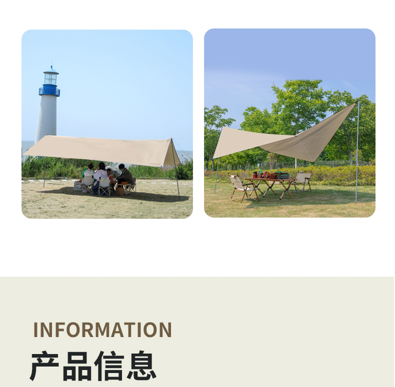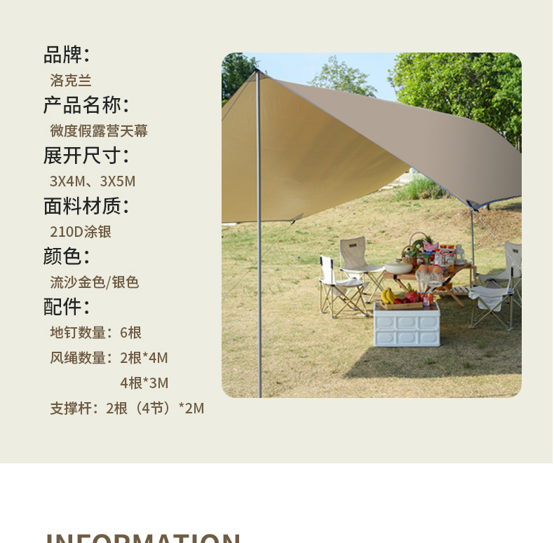 洛得兰德户外露营遮阳棚户外防雨涂银防晒凉棚防紫外线野营折叠四角天幕(单位:个) 流沙金3*4M