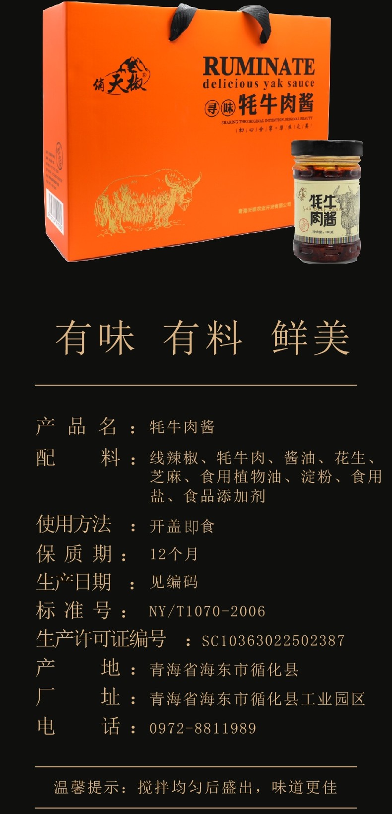 俏天椒 清真牦牛肉酱礼盒180g*8瓶(单位:盒) 拿铁色