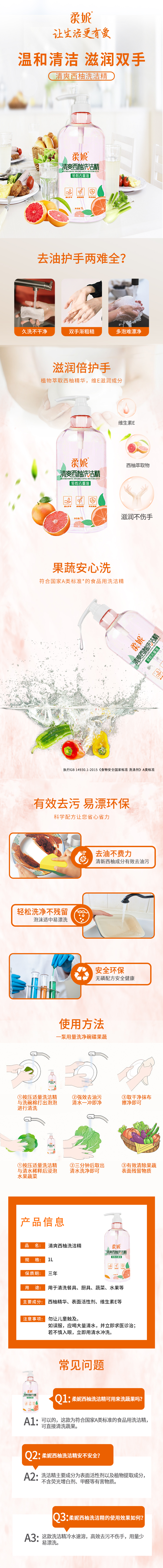 柔妮清爽西柚洗洁精1L 瓶 白色