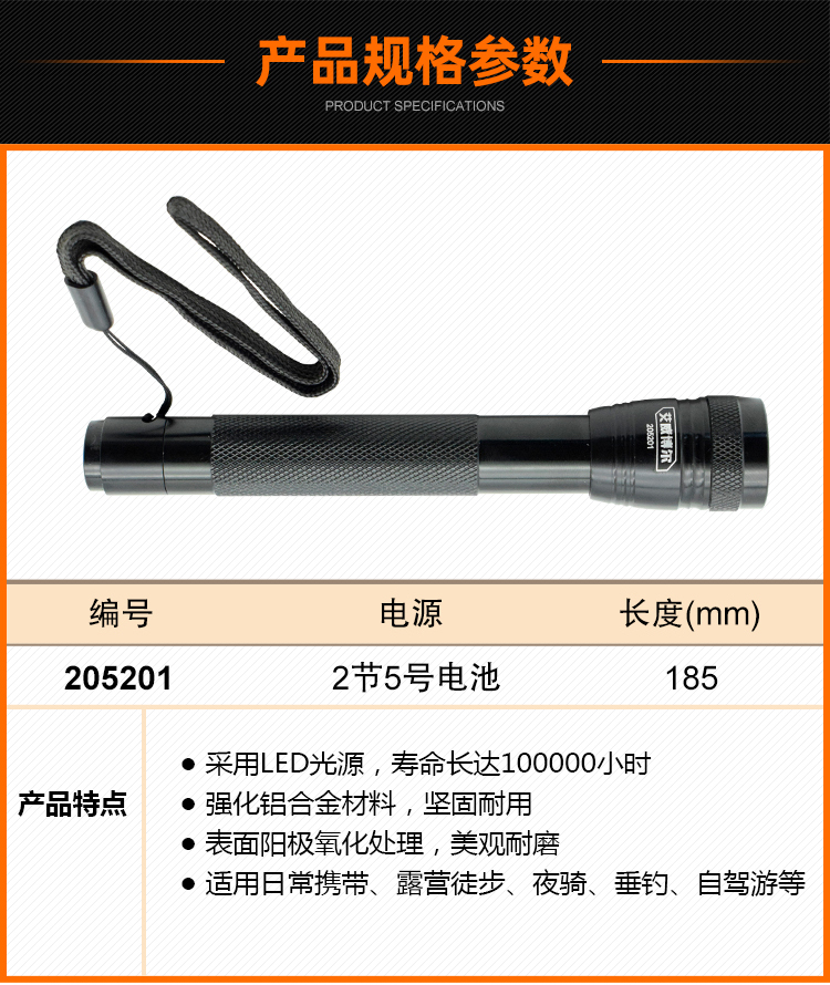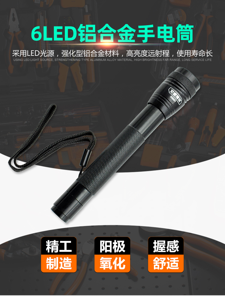 艾威博尔/EVERPOWER 6LED铝合金手电筒2节5号电池 205201 黑色