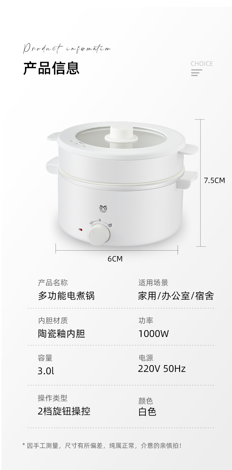 猫非猫多功能料理锅MFM-GZ1699 本白色