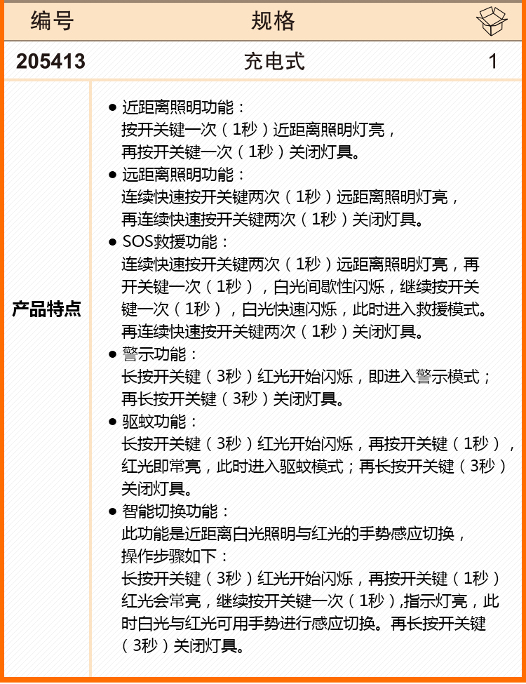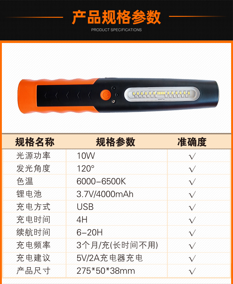 艾威博尔/EVERPOWER 充电式LED多功能工作灯充电式 205413 橙黑色