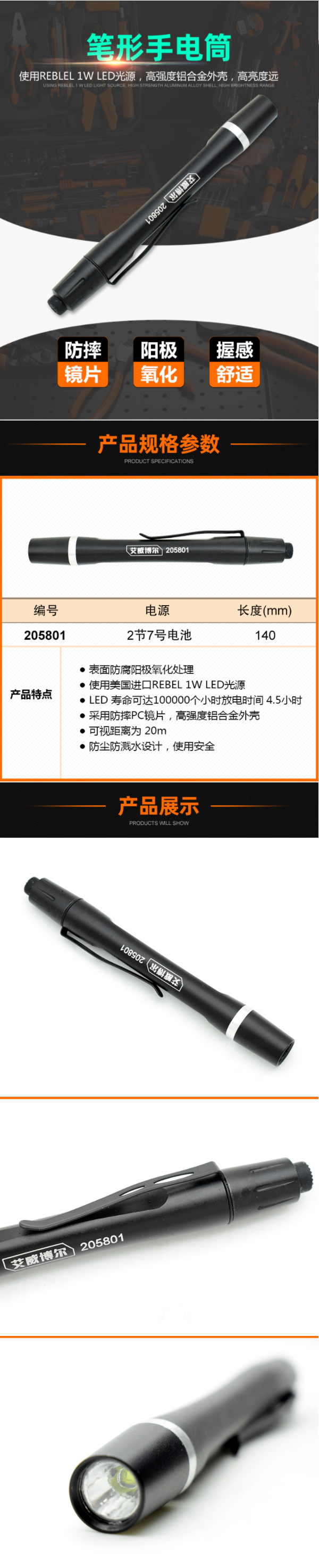 艾威博尔/EVERPOWER 笔形手电筒2节7号电池 205801 黑色