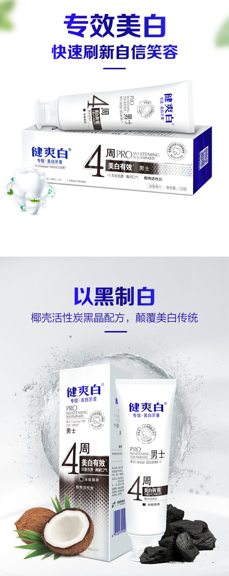 120g健爽白专效美白牙膏(男士) 白色