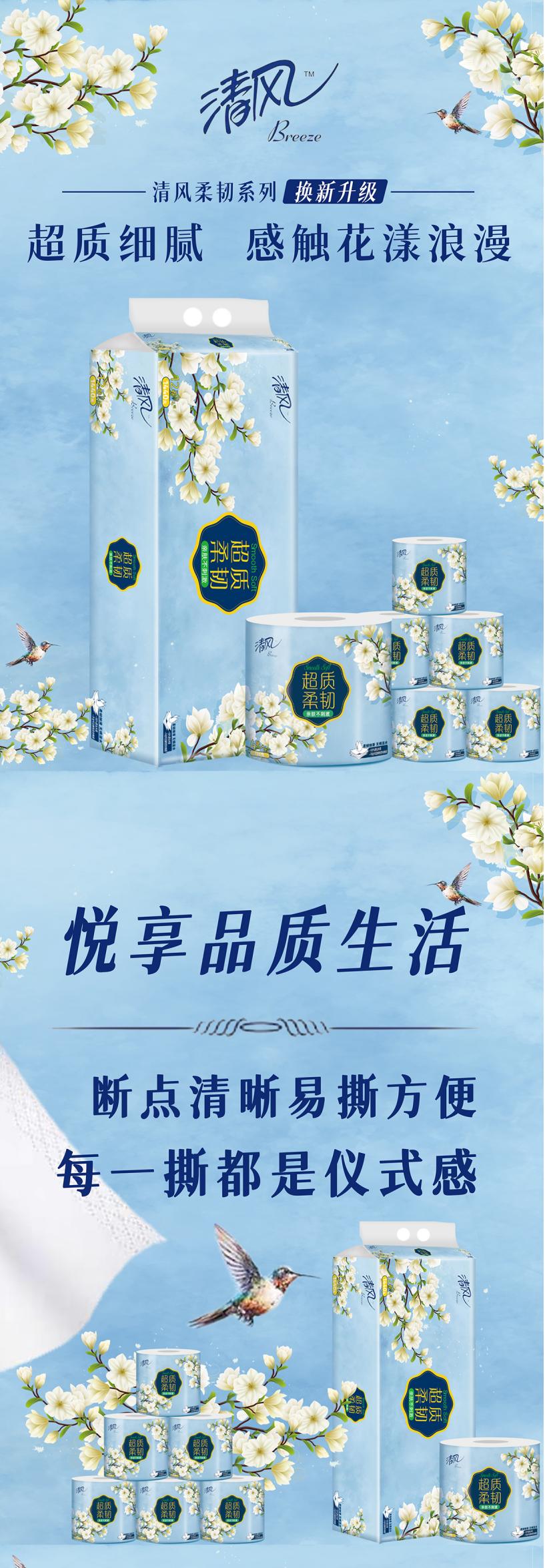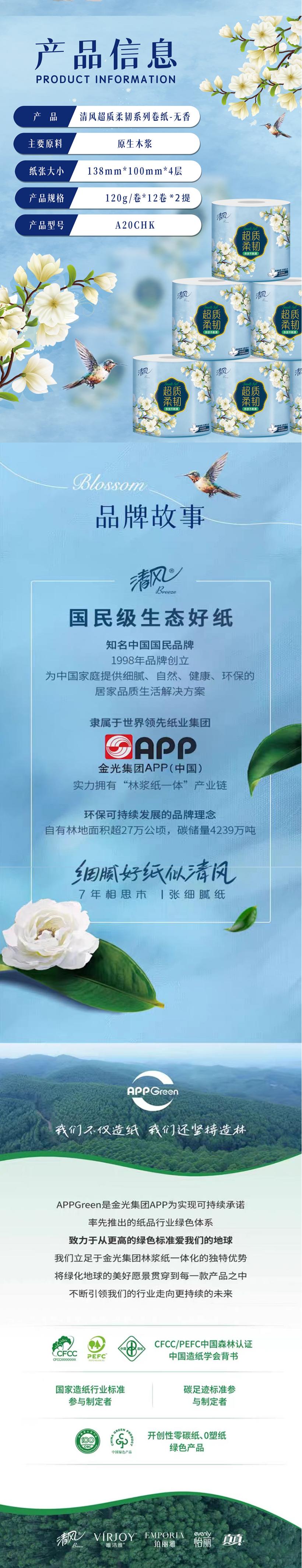 清风 A20CHK 12卷/提*2提 超质柔韧卷纸 天蓝色(单位:提)