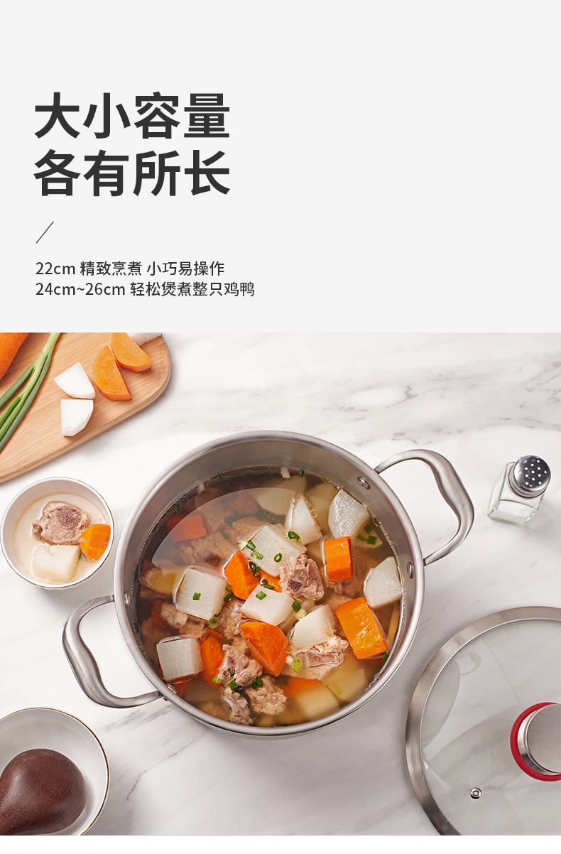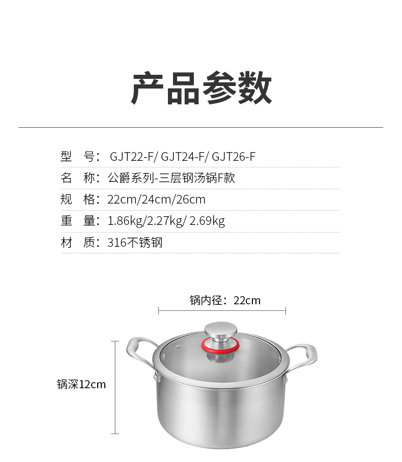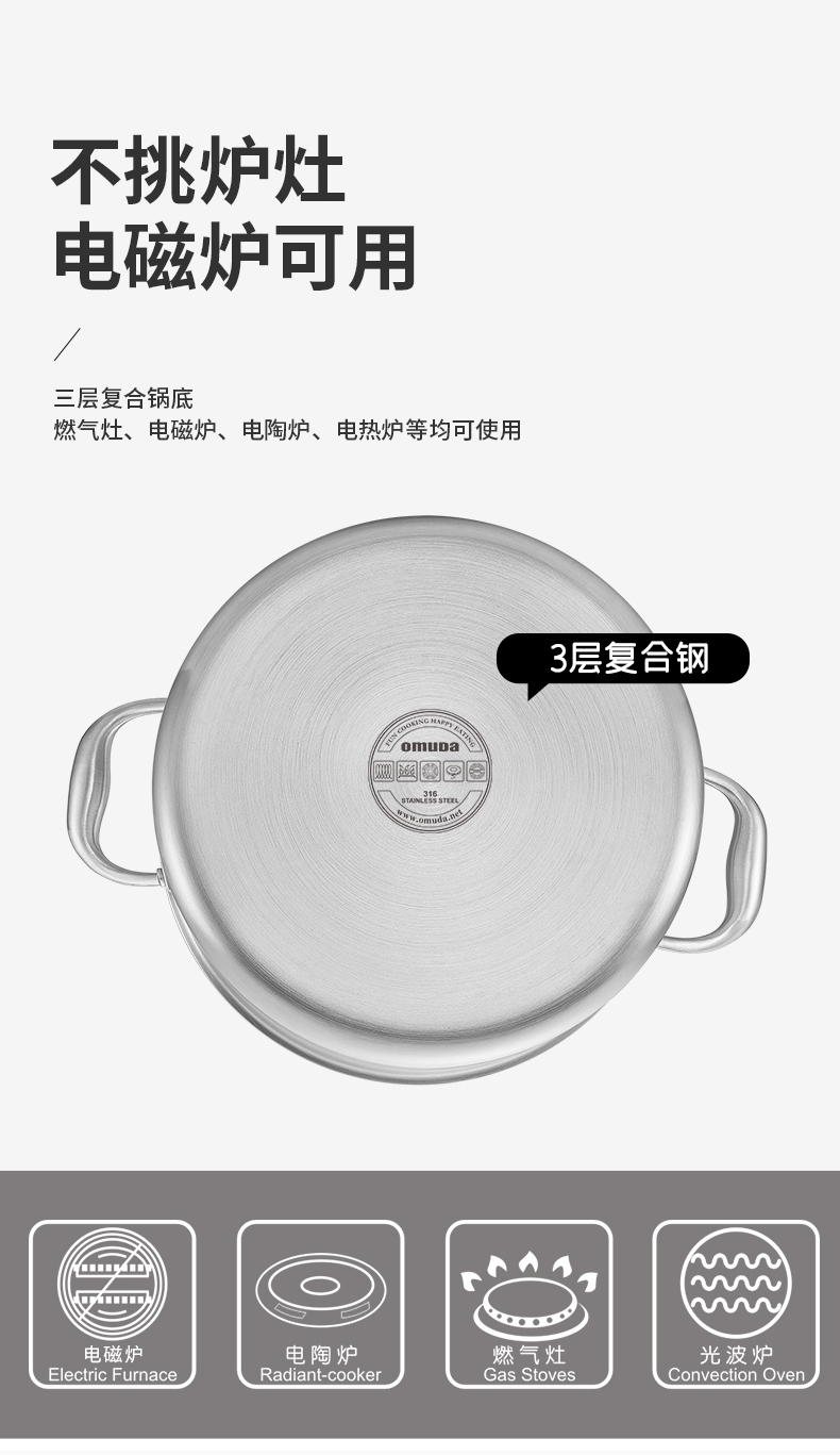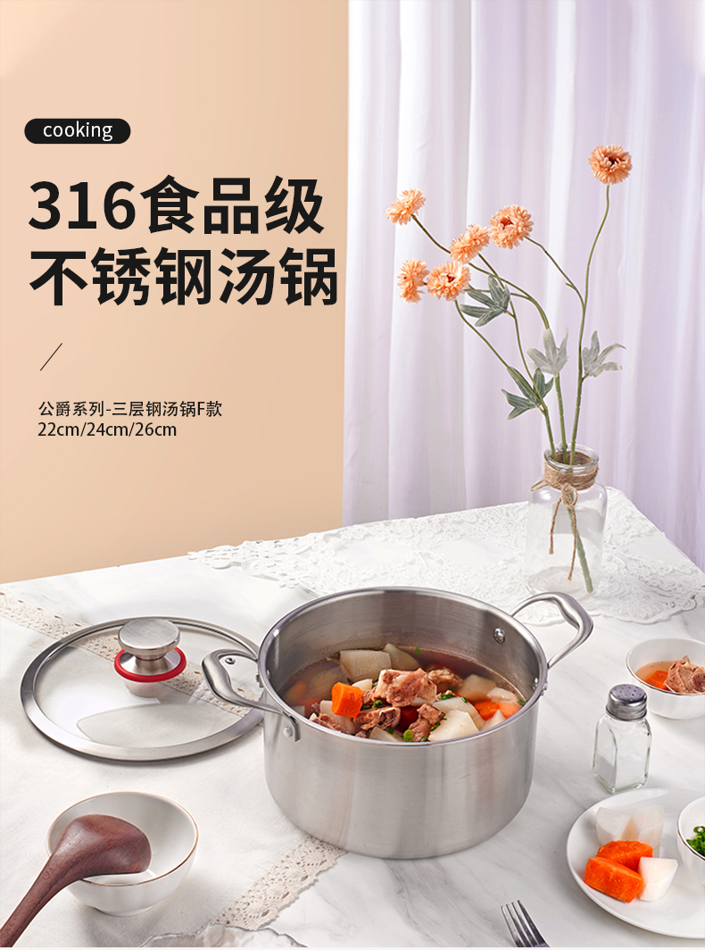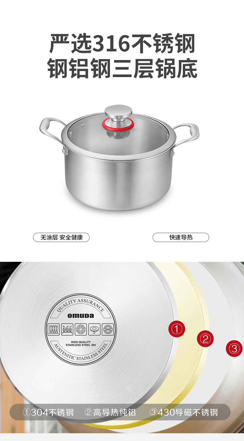 欧美达 公爵系列-三层钢汤锅F款 24cm 不锈钢色