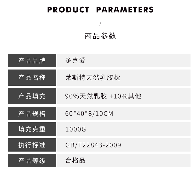 多喜爱-莱斯特60*40cm/10CM天然乳胶枕 个 白色