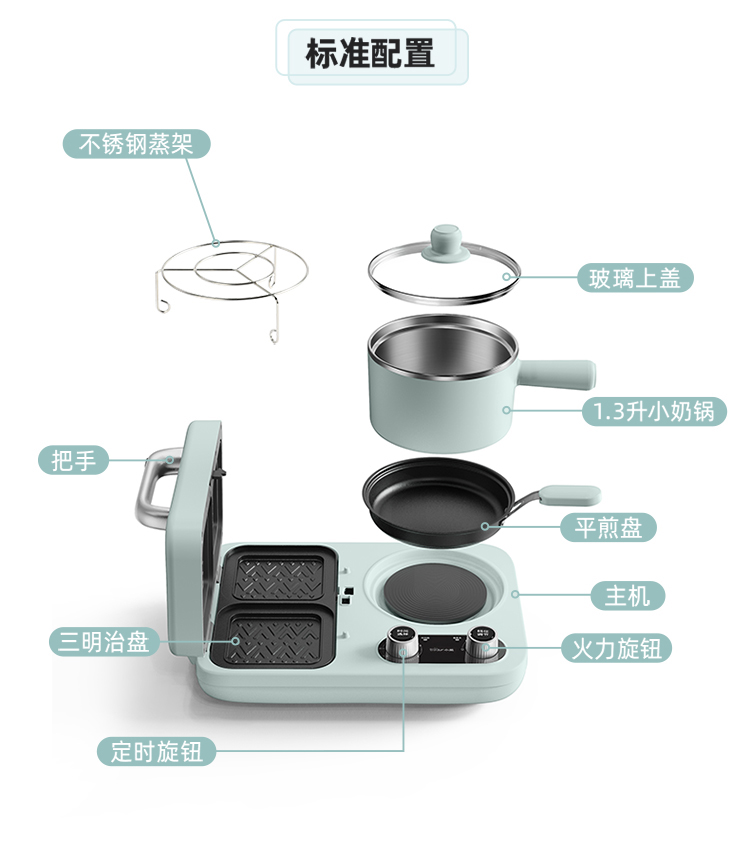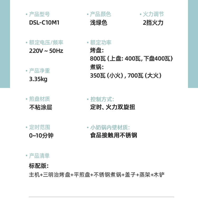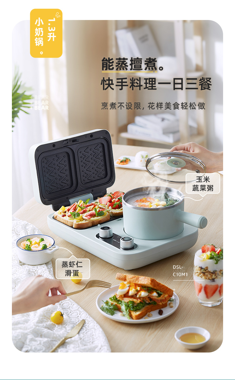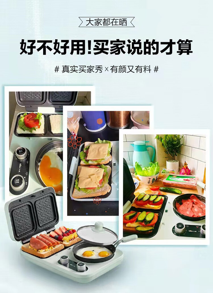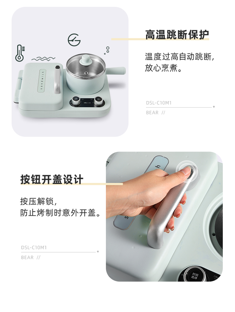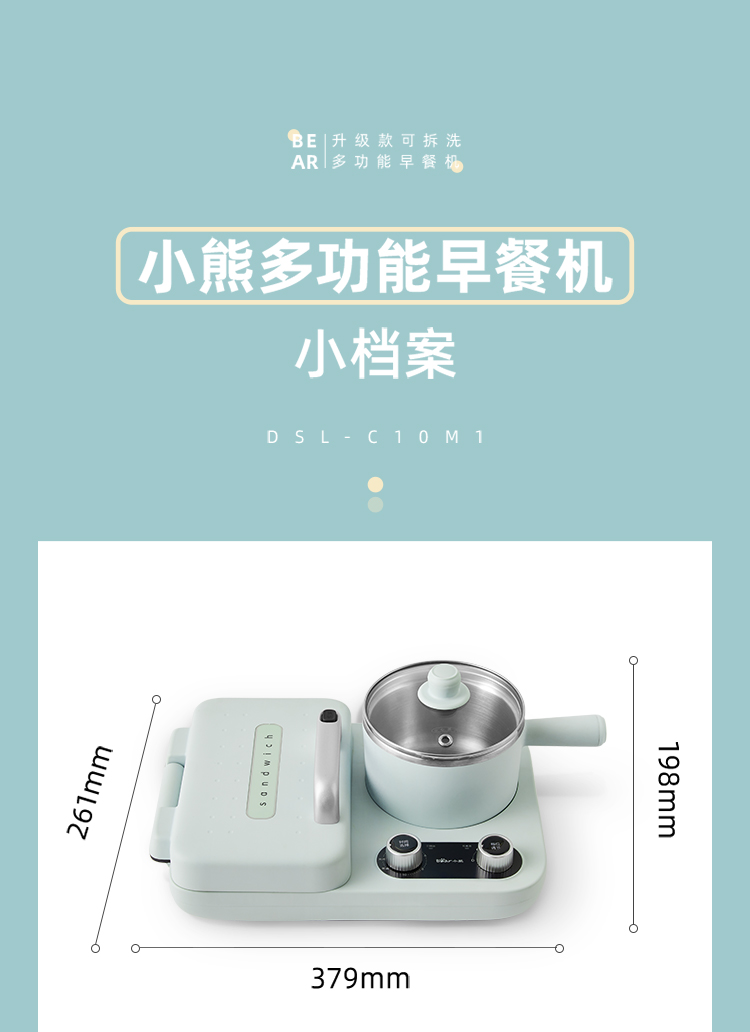 小熊(Bear) 三明治机早餐机双盘定时多功能四合一DSL-C10M1单位:个 浅绿色