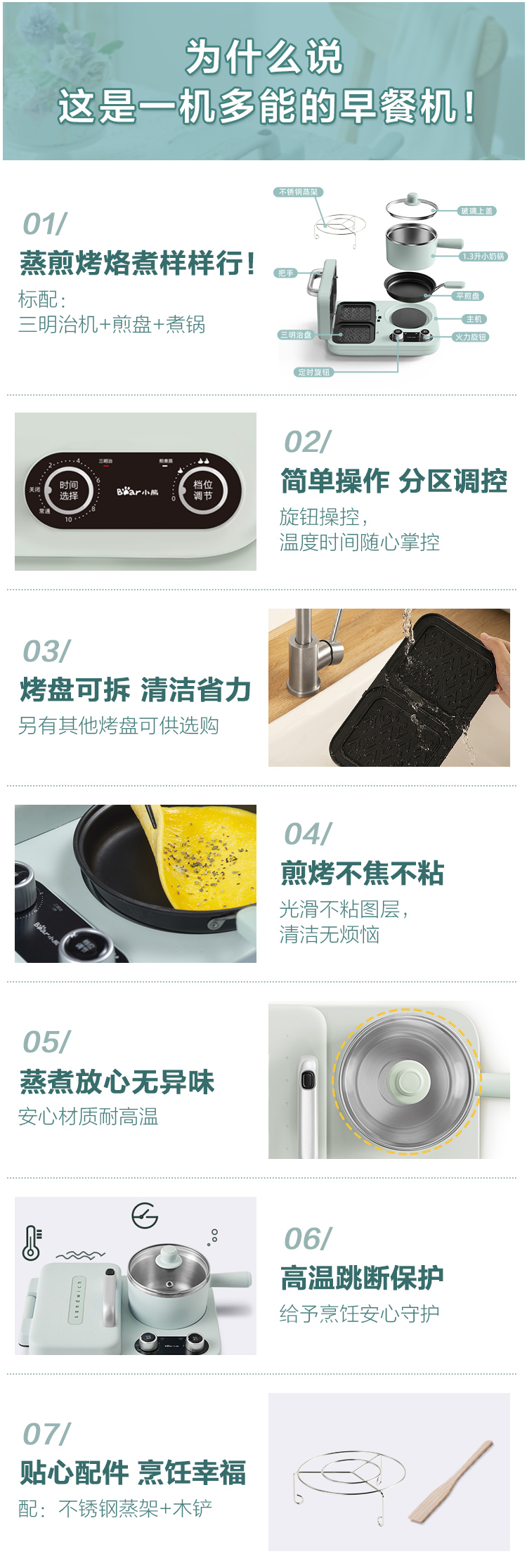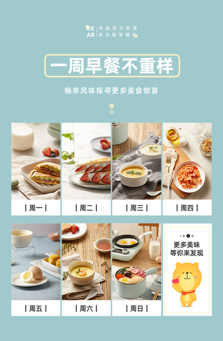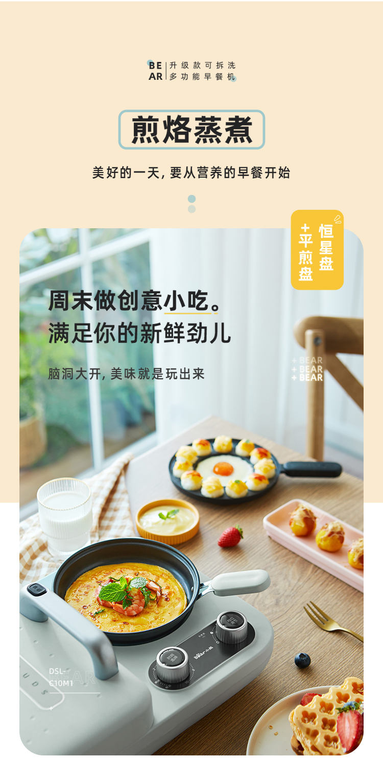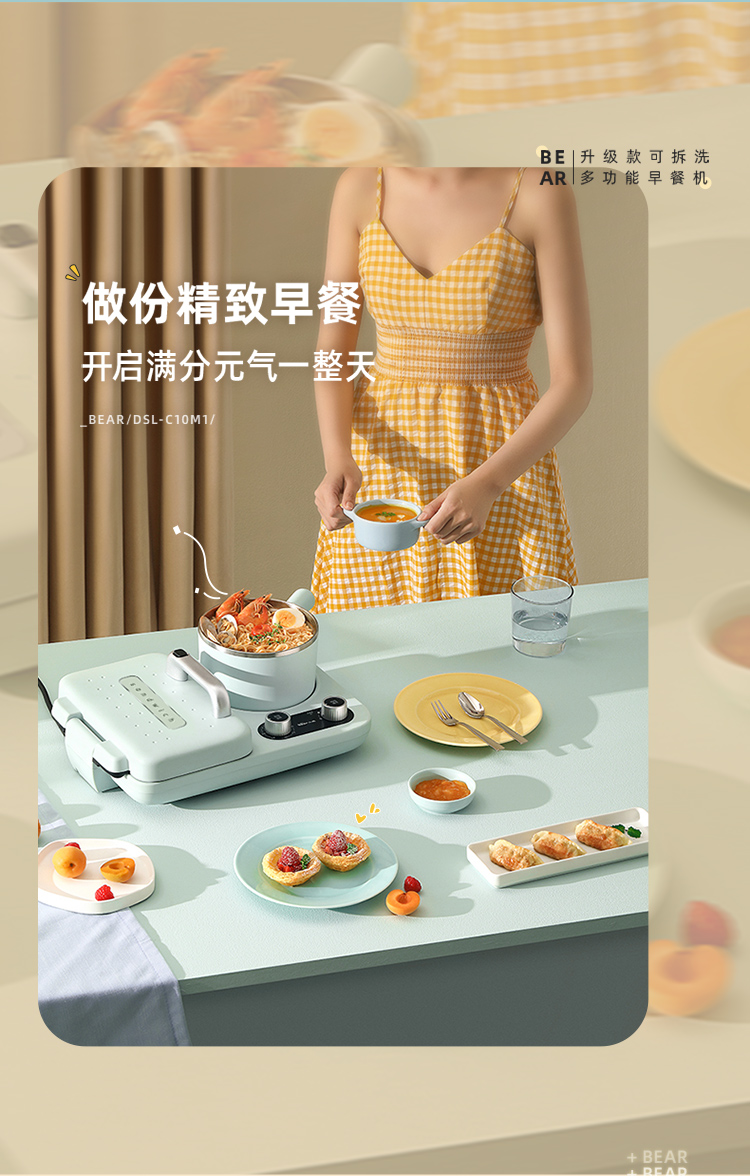 小熊(Bear) 三明治机早餐机双盘定时多功能四合一DSL-C10M1单位:个 浅绿色