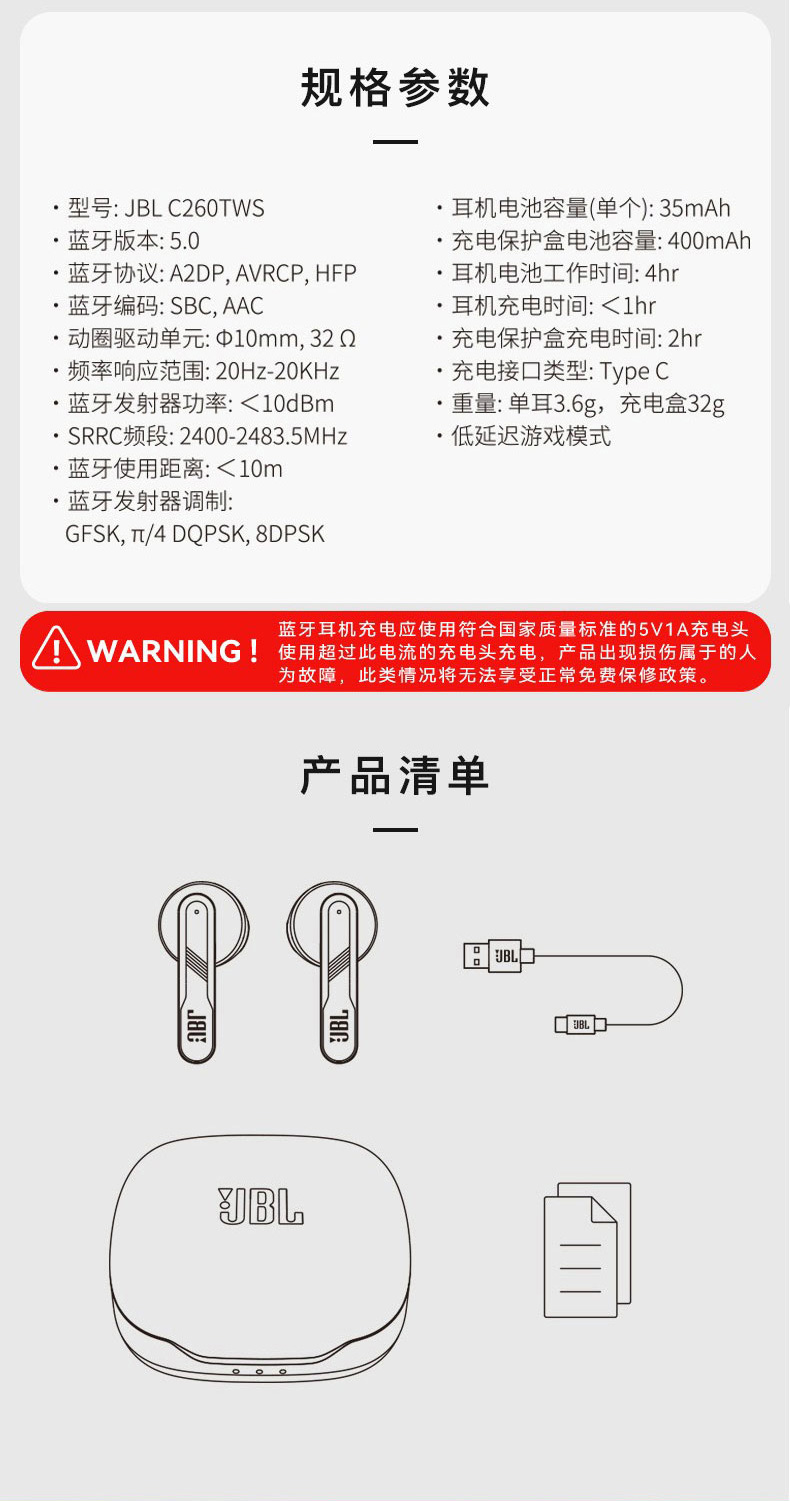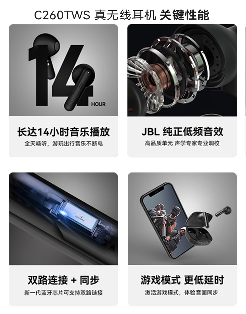 JBL 无线运动蓝牙耳机C260TWS(单位:个) 黑色