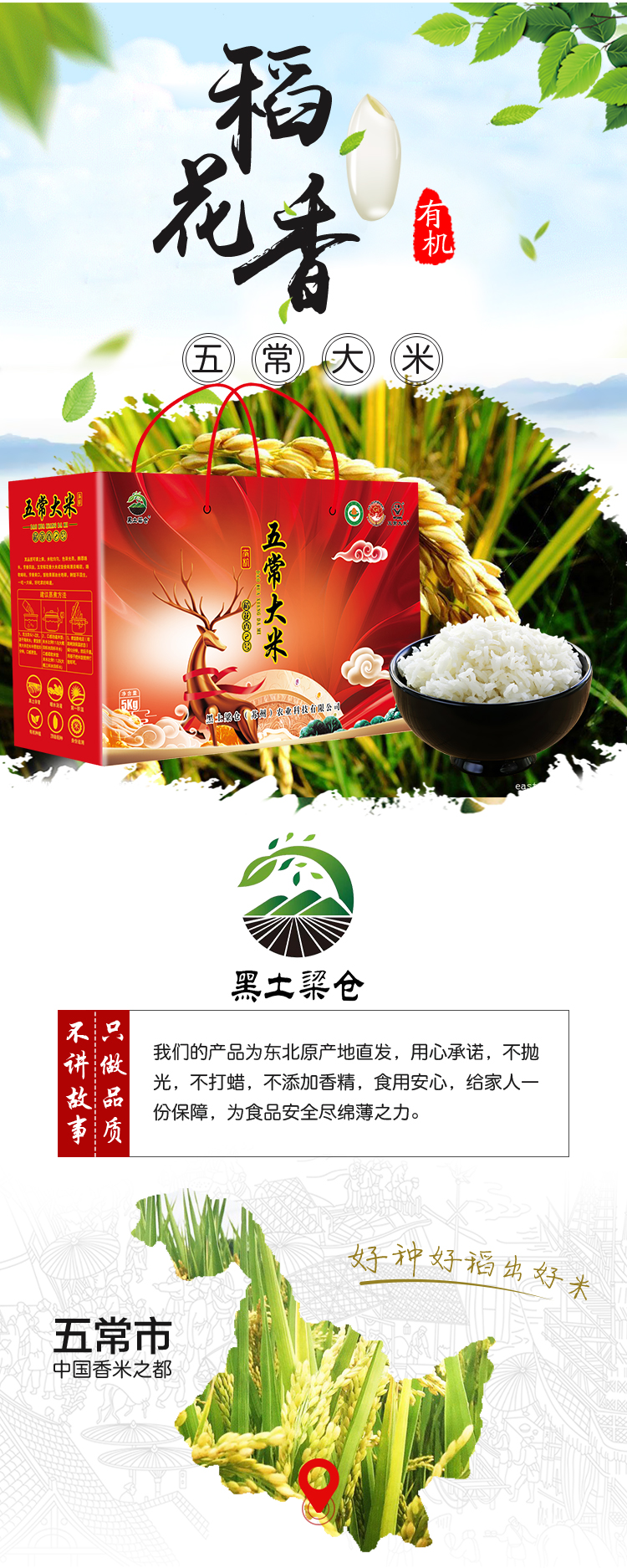 黑土粱仓,五常有机大米礼盒,原粮稻花香2号,文创包装设计,5千克礼盒包装 莓果色