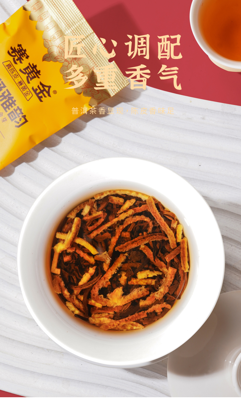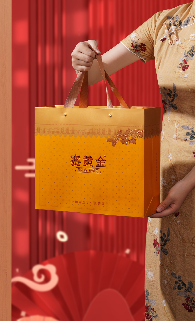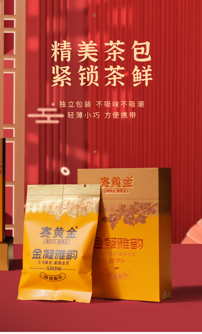 赛黄金旗舰店金凝雅韵新会陈皮普洱茶勐海冰岛金芽熟茶礼盒装240g 玫瑰金