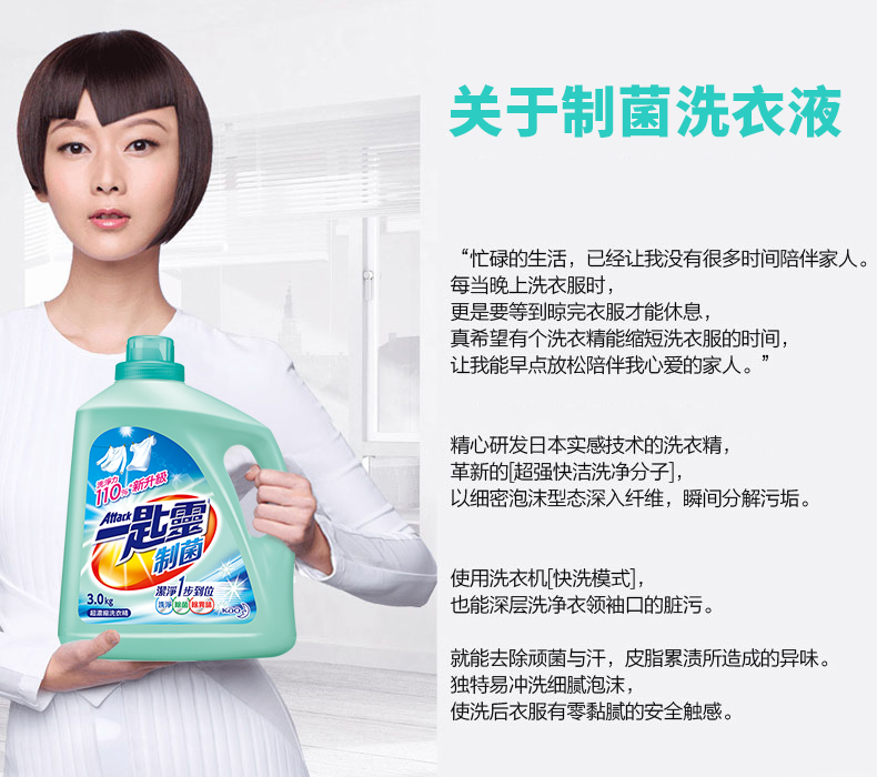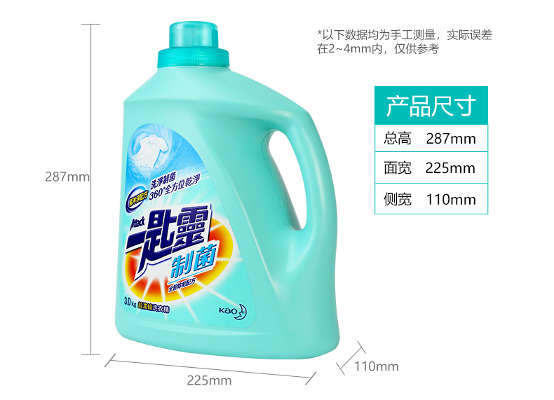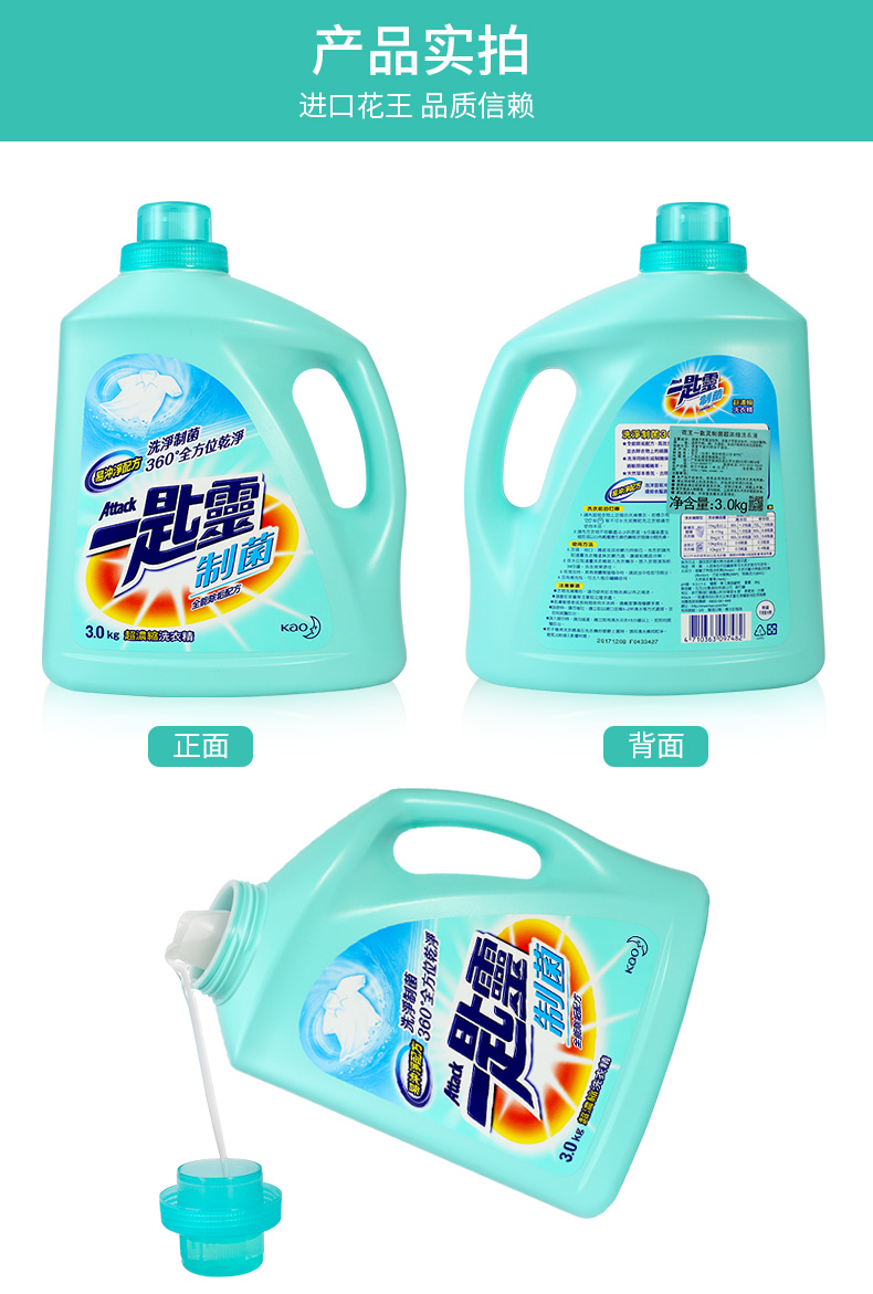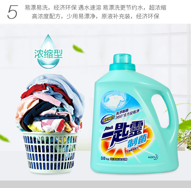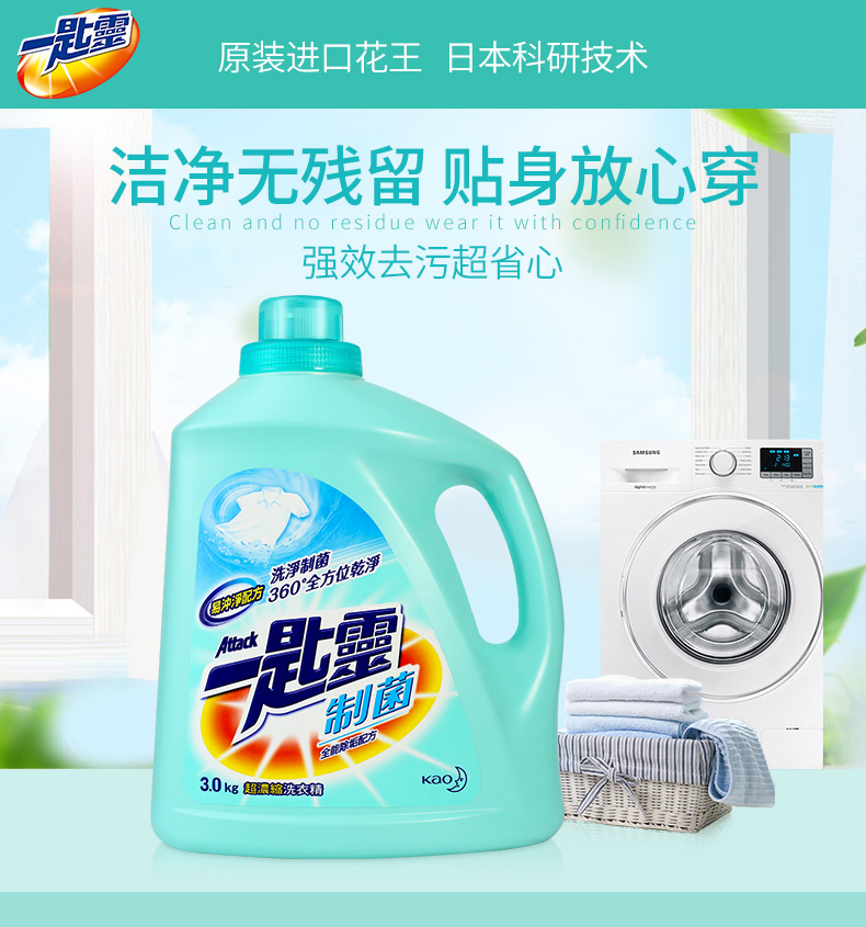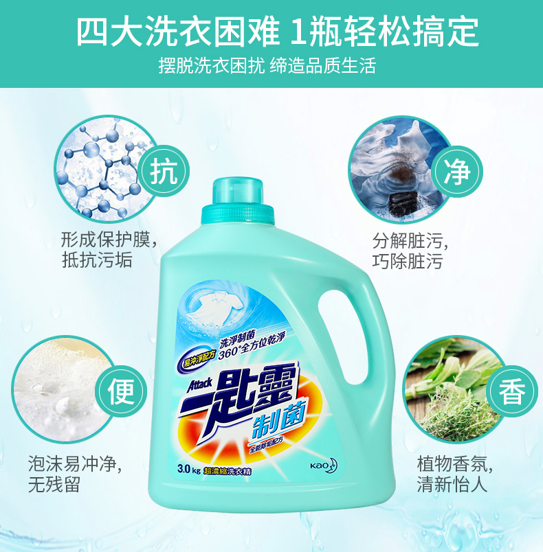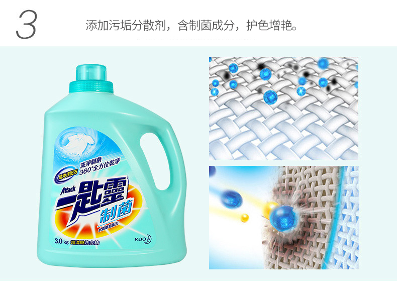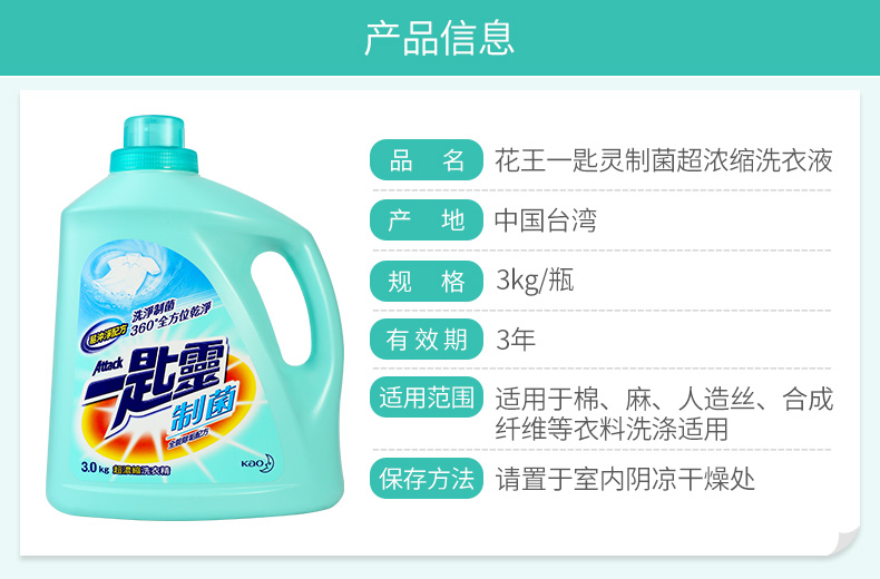 花王(KAO) 一匙灵制菌超浓缩洗衣液3kg/瓶 (单位:瓶) 蓝色