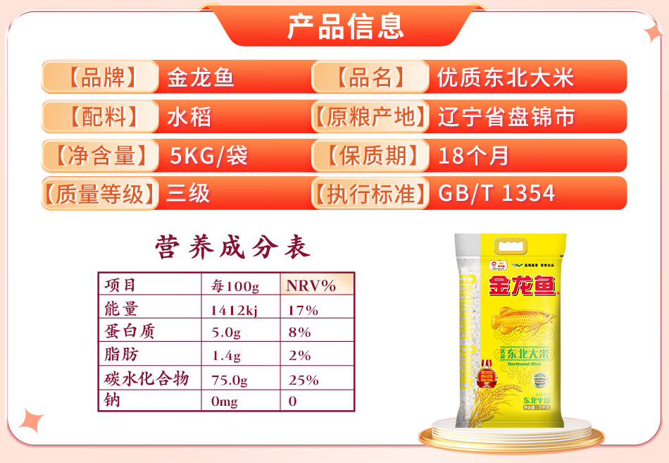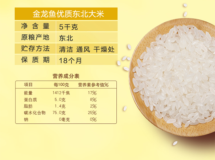 金龙鱼 优质东北 真空包装5kg 大米 黄色(单位:袋)