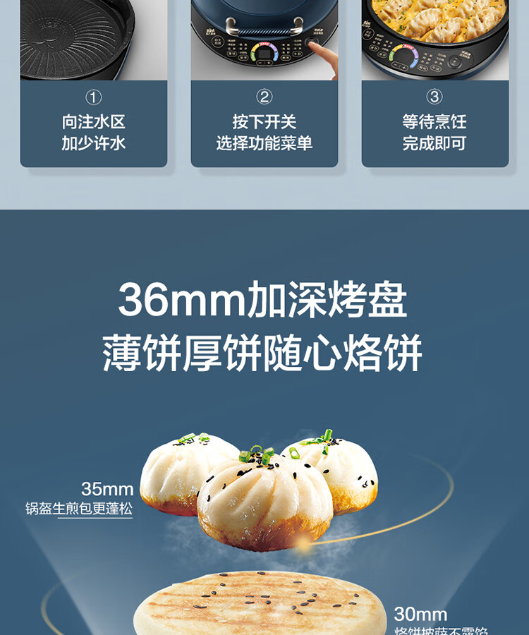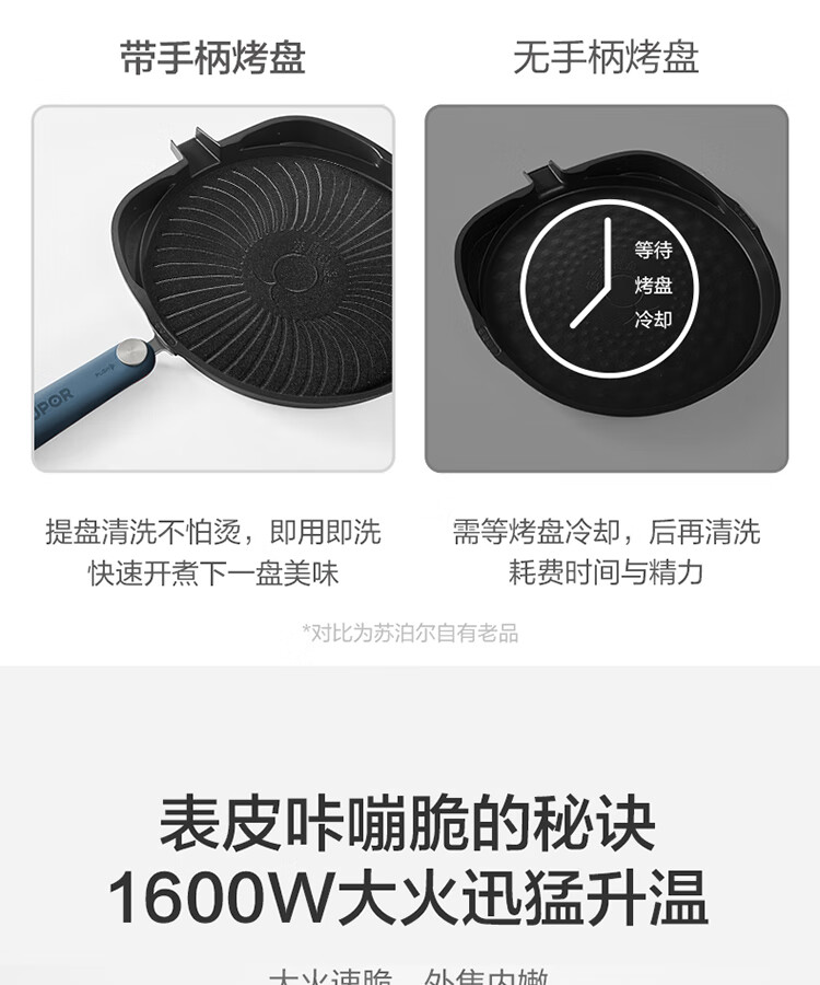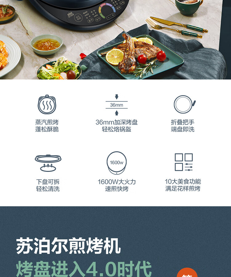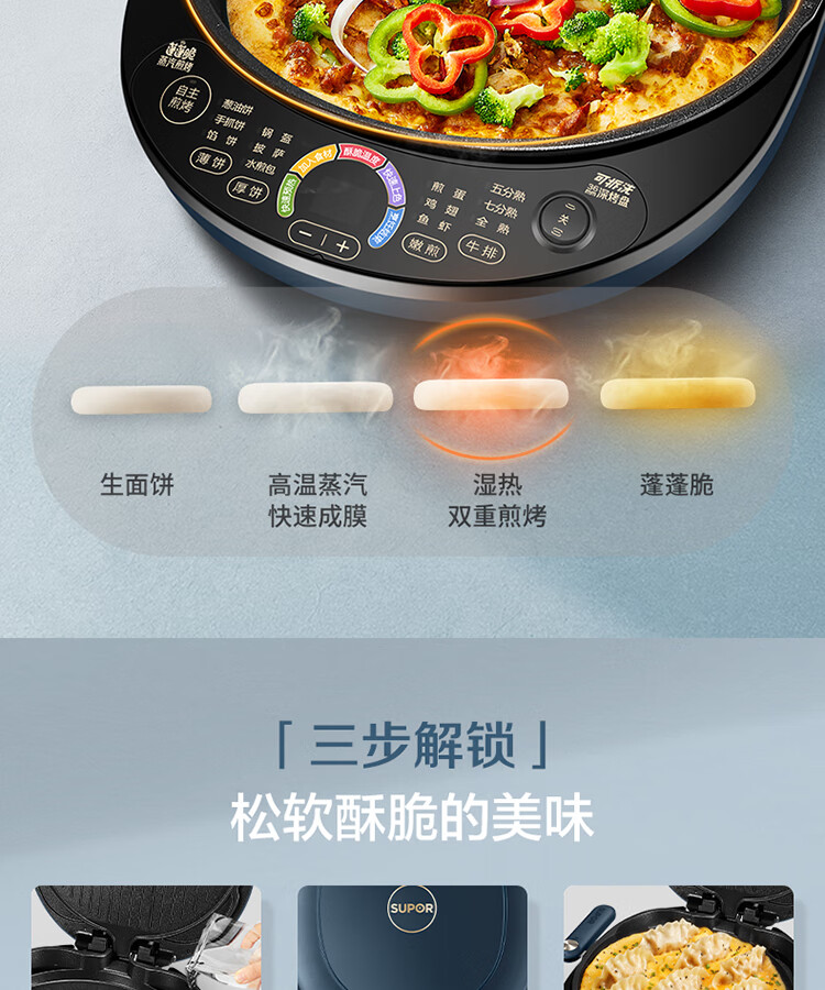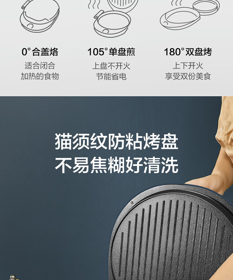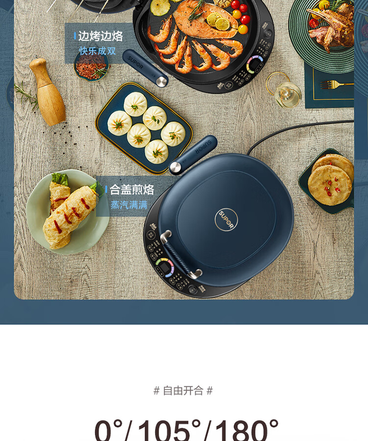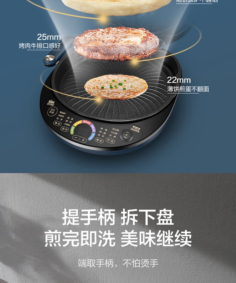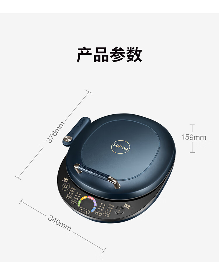 苏泊尔(SUPOR) 电饼铛 可拆洗双面加热早餐机薄饼机 JD30RQ09/台 深蓝色