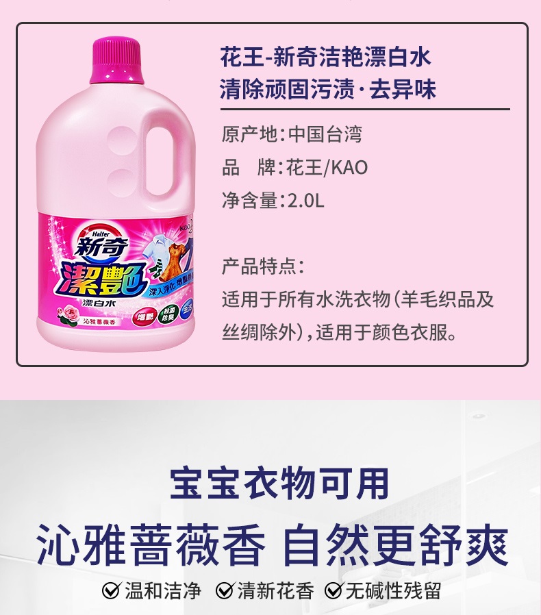 花王(KAO)新奇洁艳漂白水 沁雅蔷薇香 2L/瓶 (单位:瓶)粉色