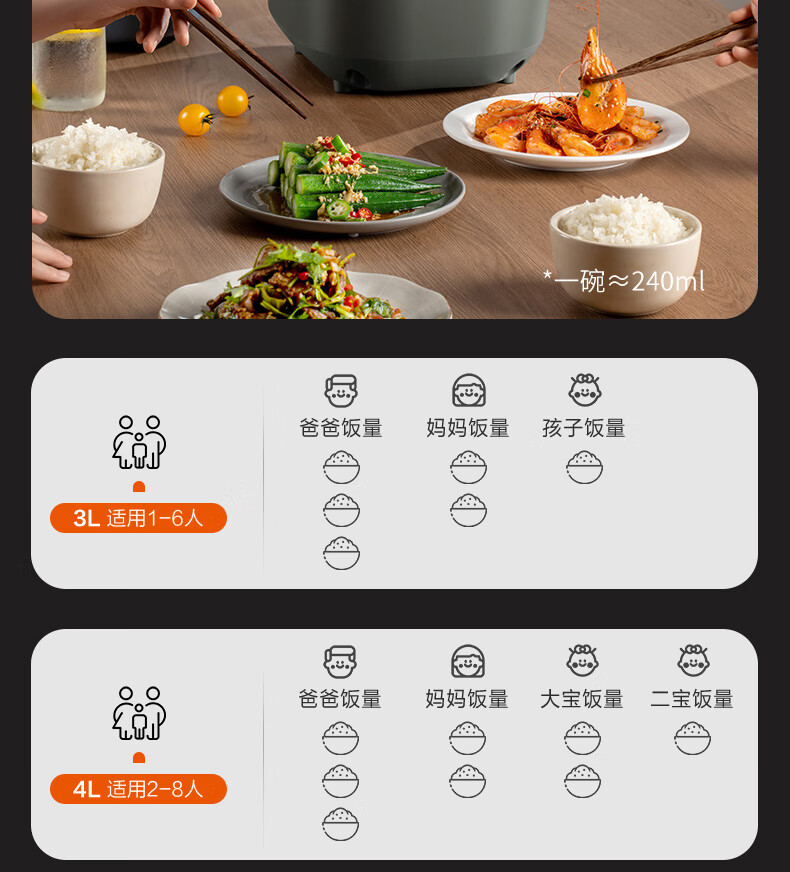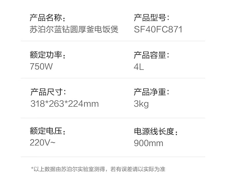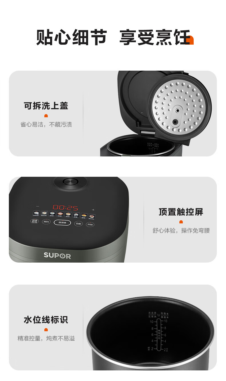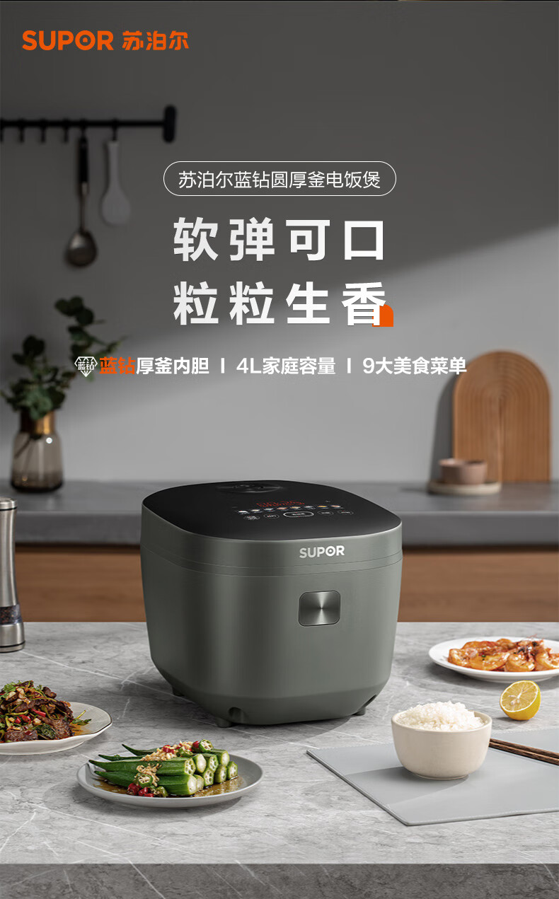 苏泊尔(SUPOR) SF40FC871 4L 电饭煲 灰色(单位:个)