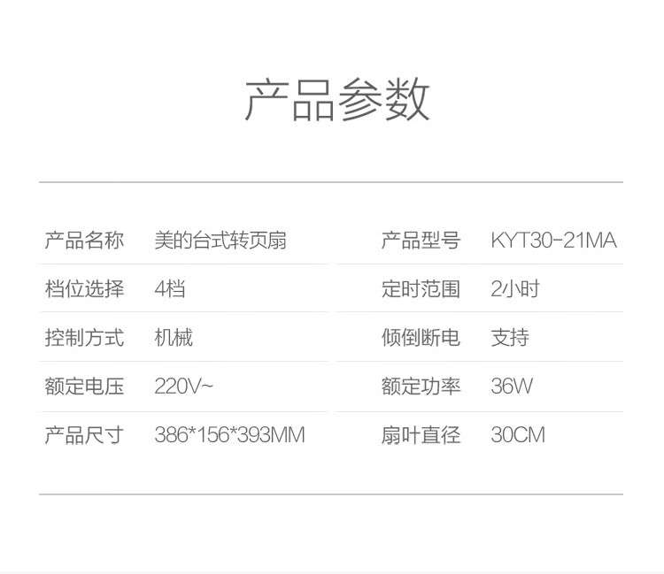 美的(Midea)电风扇台扇 KYT30-21MA(单位:台) 白色