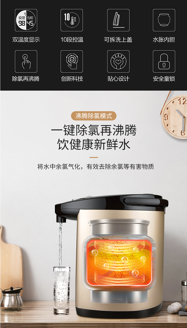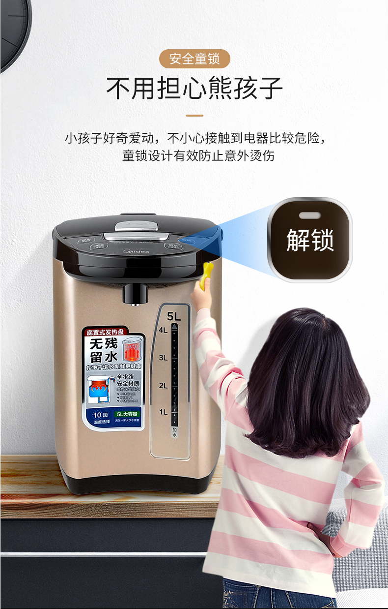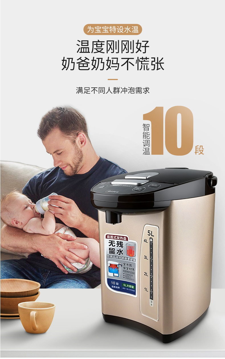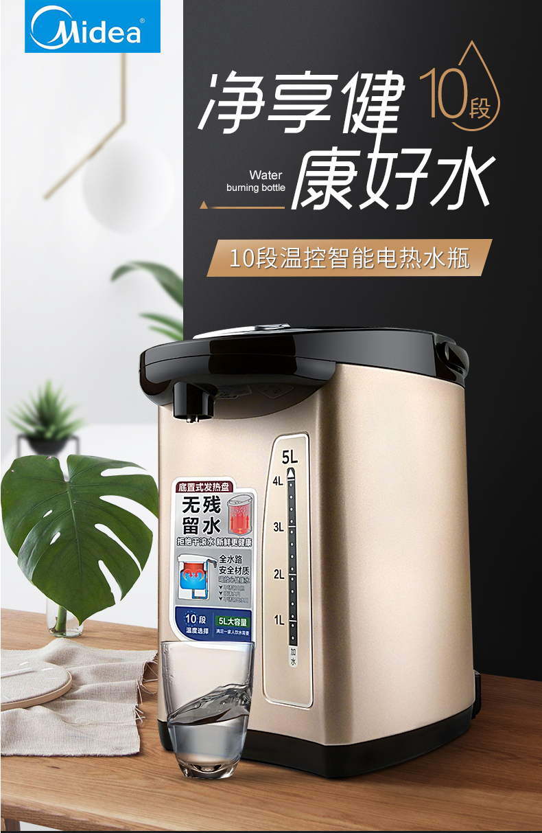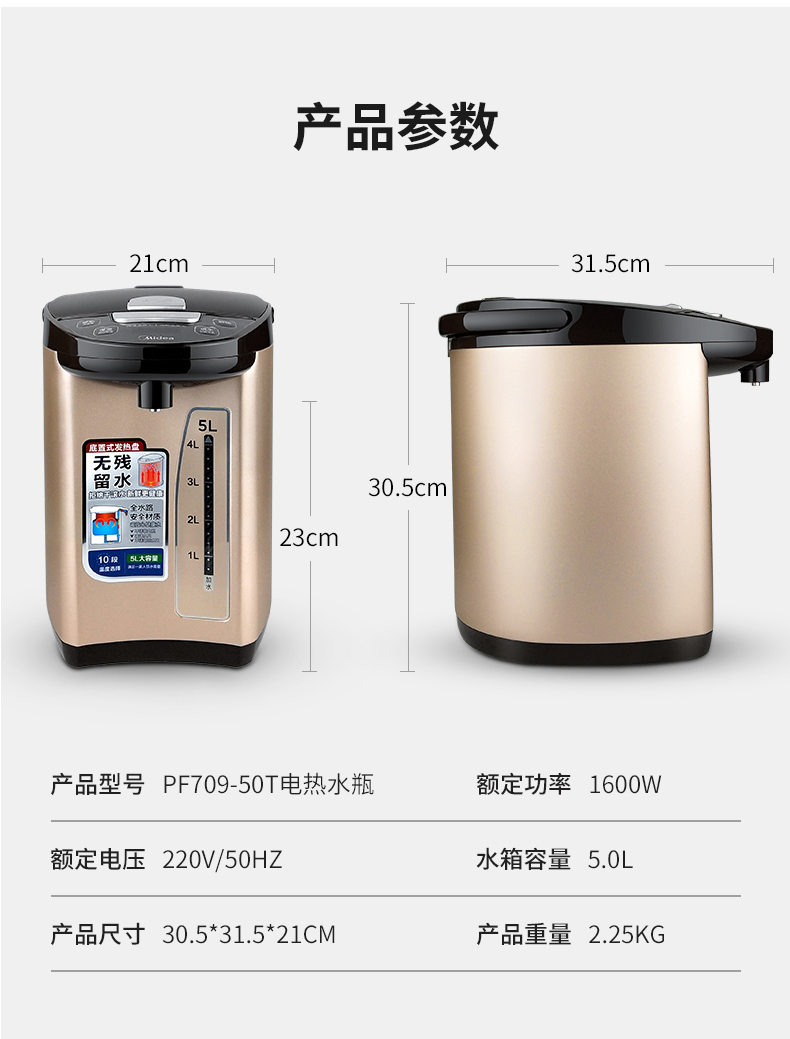 美的(Midea)电水壶电热水瓶PF709-50T(单位:台) 金色